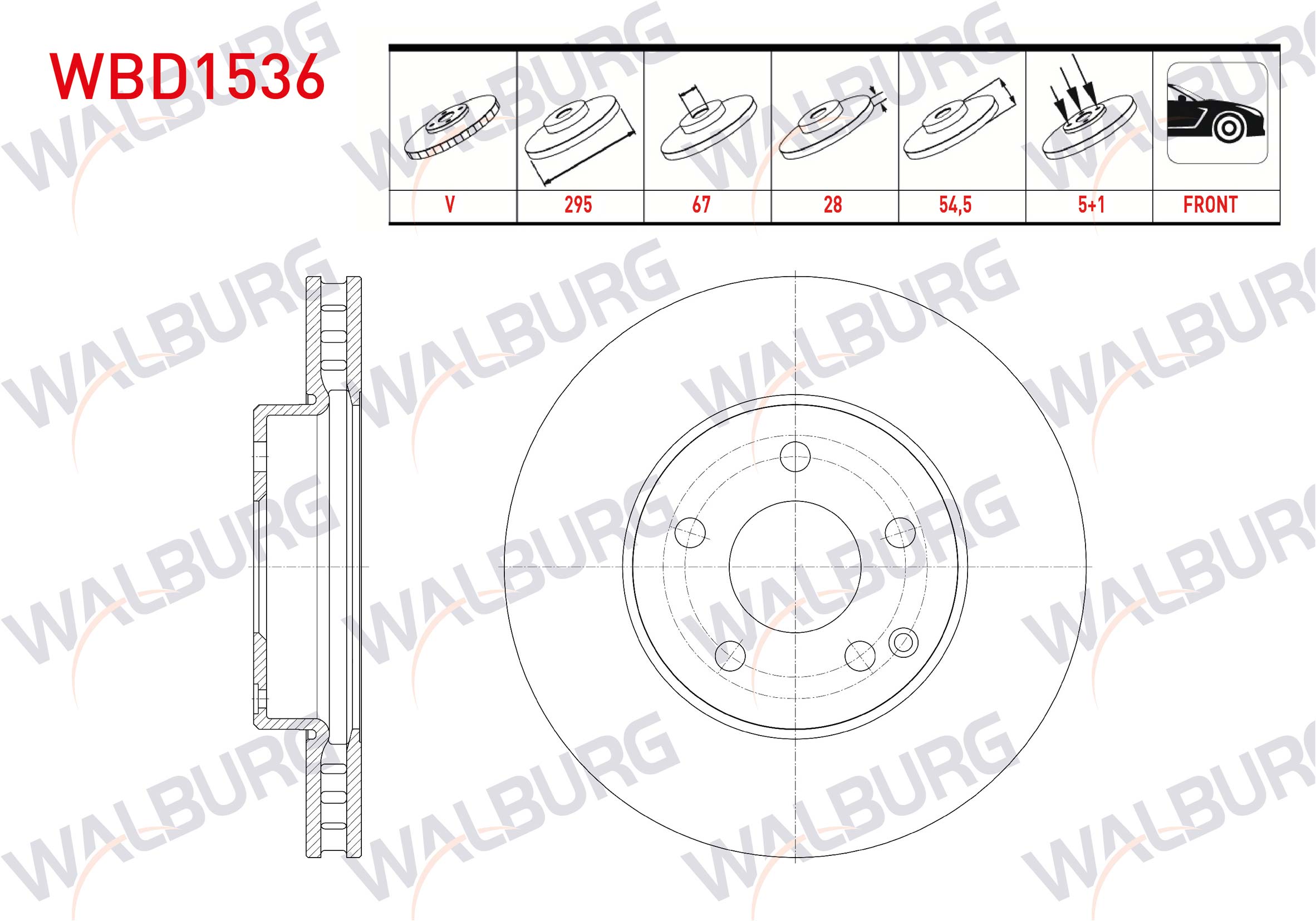 WALBURG WBD1536 | Fren Diski Ön Havalı Mercedes E Class (W211) E 200 CDI 5 Bjn 295X28x67x54,5 2002-2008 | 2 Adet