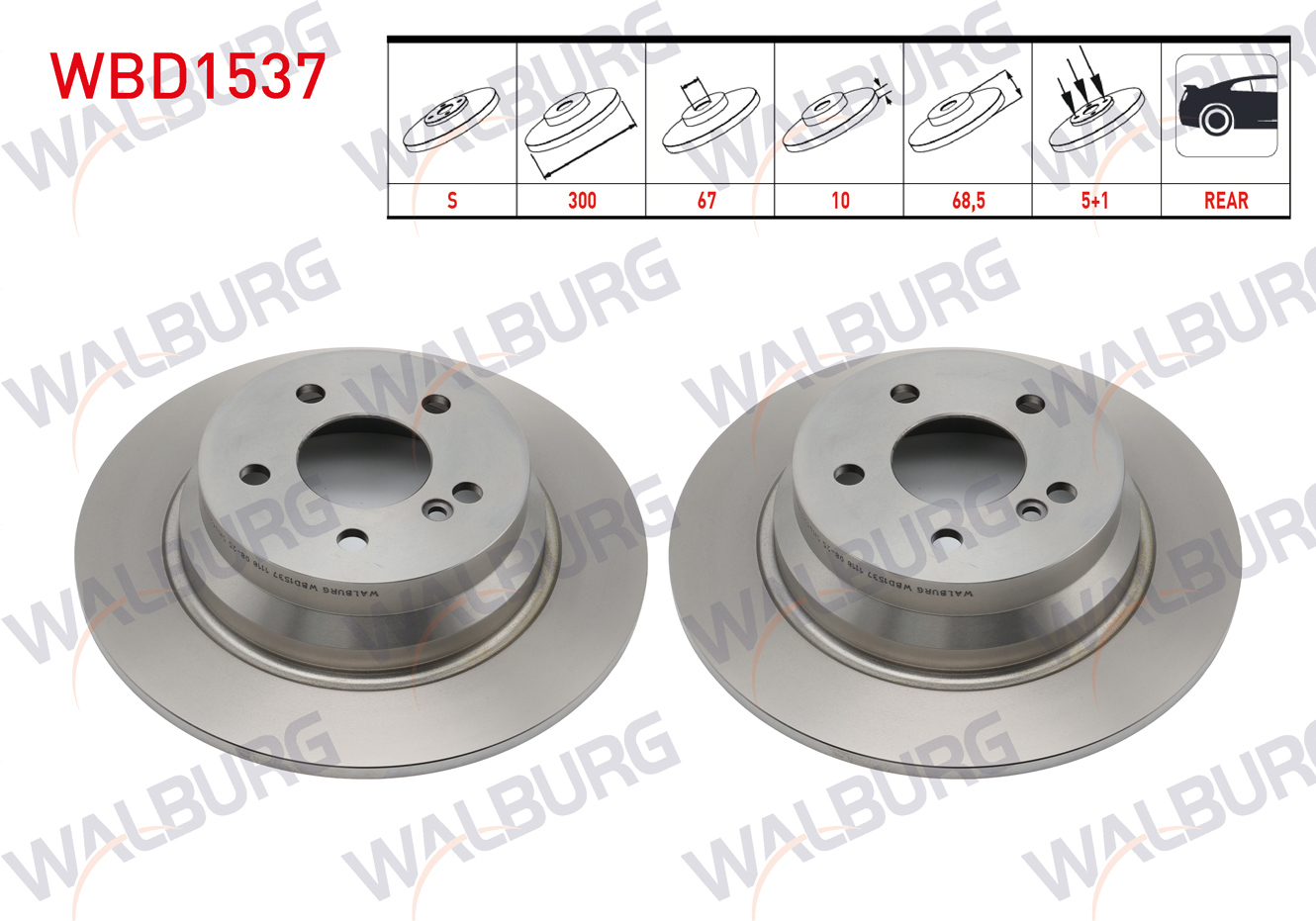 WALBURG WBD1537 | Fren Diski Arka Düz Mercedes E Class (W211) E 220 CDI 5 Bjn 300X10x67x68,5 2002-2008 | 2 Adet