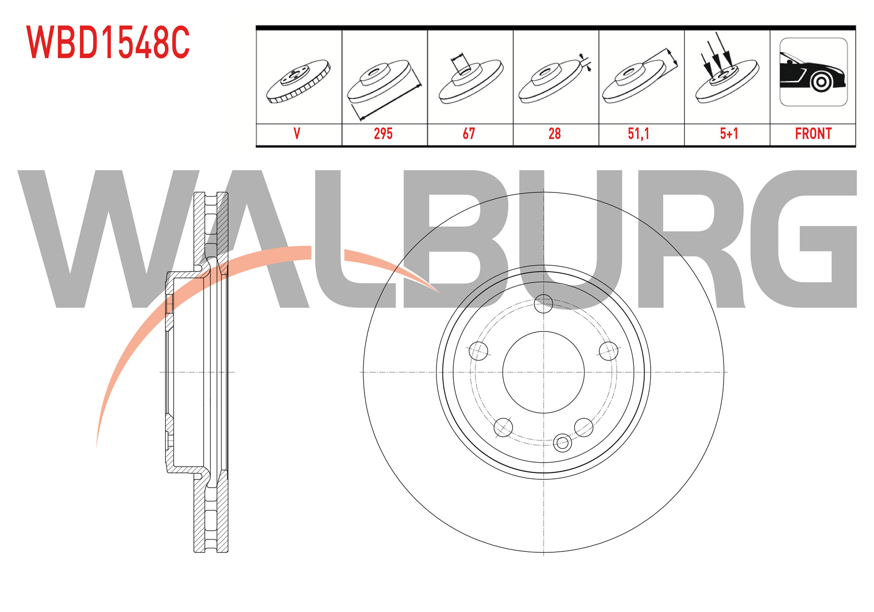 WALBURG WBD1548C | Fren Diski Ön Havalı Kaplamalı Mercedes A Serisi (W176) A 220 CDI 5 Bjn 295X28x67x51,1 2012-| 2 Adet