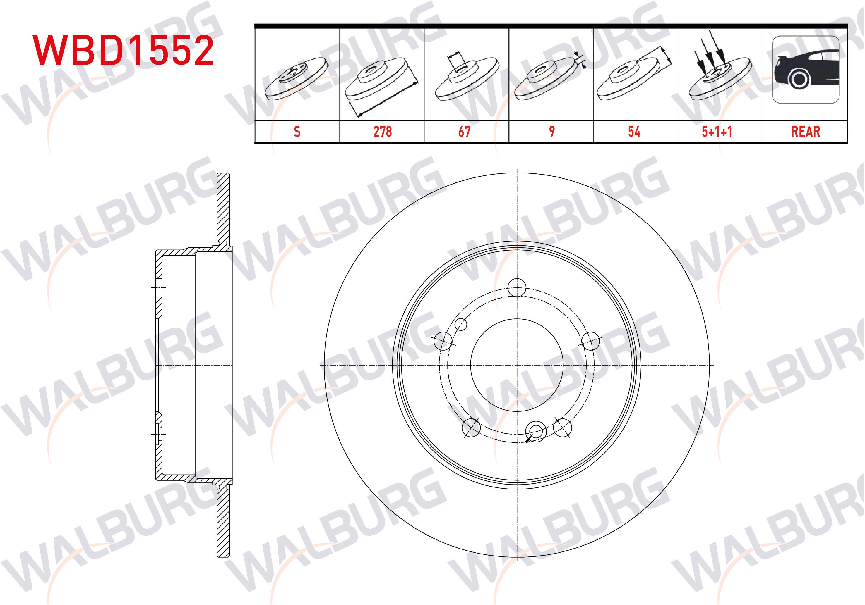 WALBURG WBD1552 | Fren Diski Arka Düz Mercedes C Serisi (W203) C 200 CDI 5 Bjn 278X9x67x54 2000-2006 | 2 Adet Takım