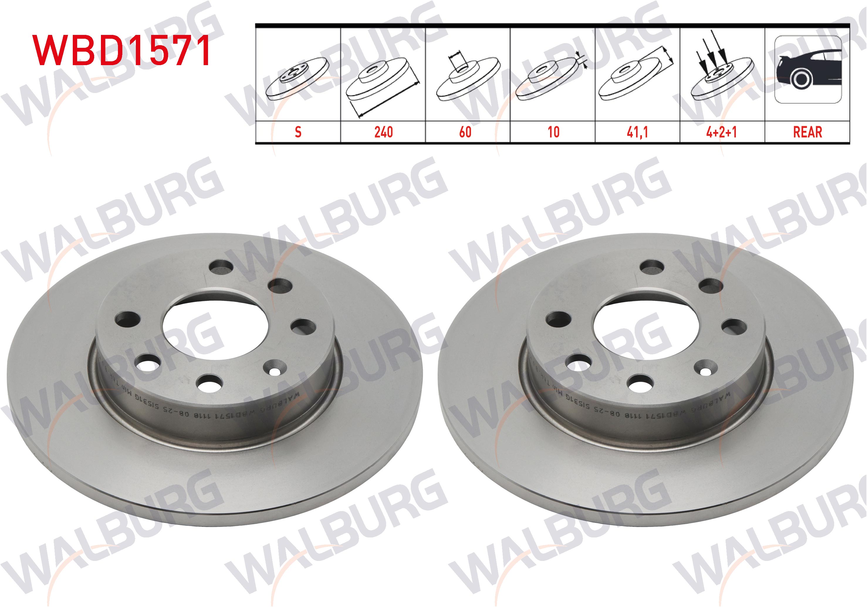 WALBURG WBD1571 | Fren Diski Ön Düz 4 Bjn 240X10x60x41,1 Opel Corsa C 1.0İ-1.2İ 2000-2006 | 2 Adet Takım