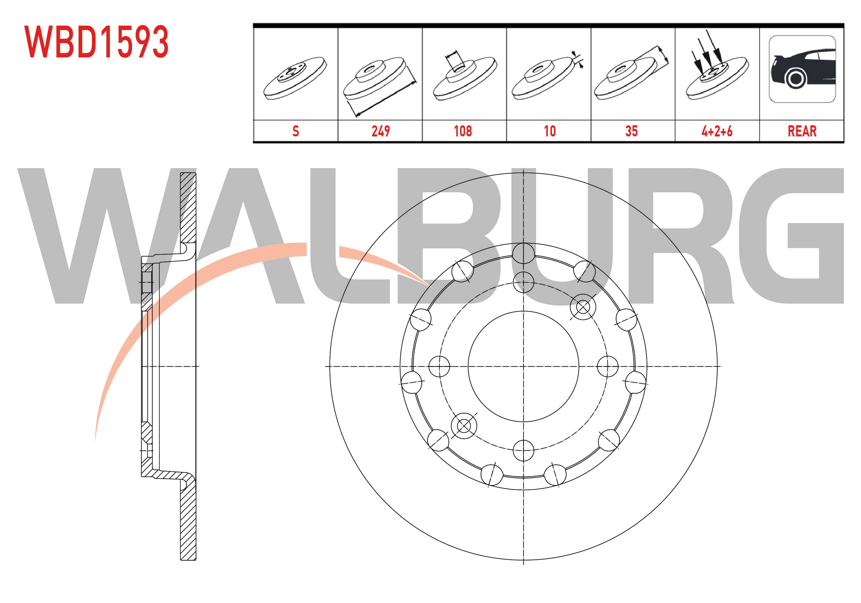 WALBURG WBD1593 | Fren Diski Arka Düz 4 Bjn 249X10x108x35 Opel Corsa F 1.2-1.5 D 2019-/ Peugeot 2008 1.5 Bluehdı 2018-/ 208 1.5 Bluehdı 2018-/ Ds Automobıles Ds3 Crossback 1.5 Bluehdı 2019-| 2 Adet