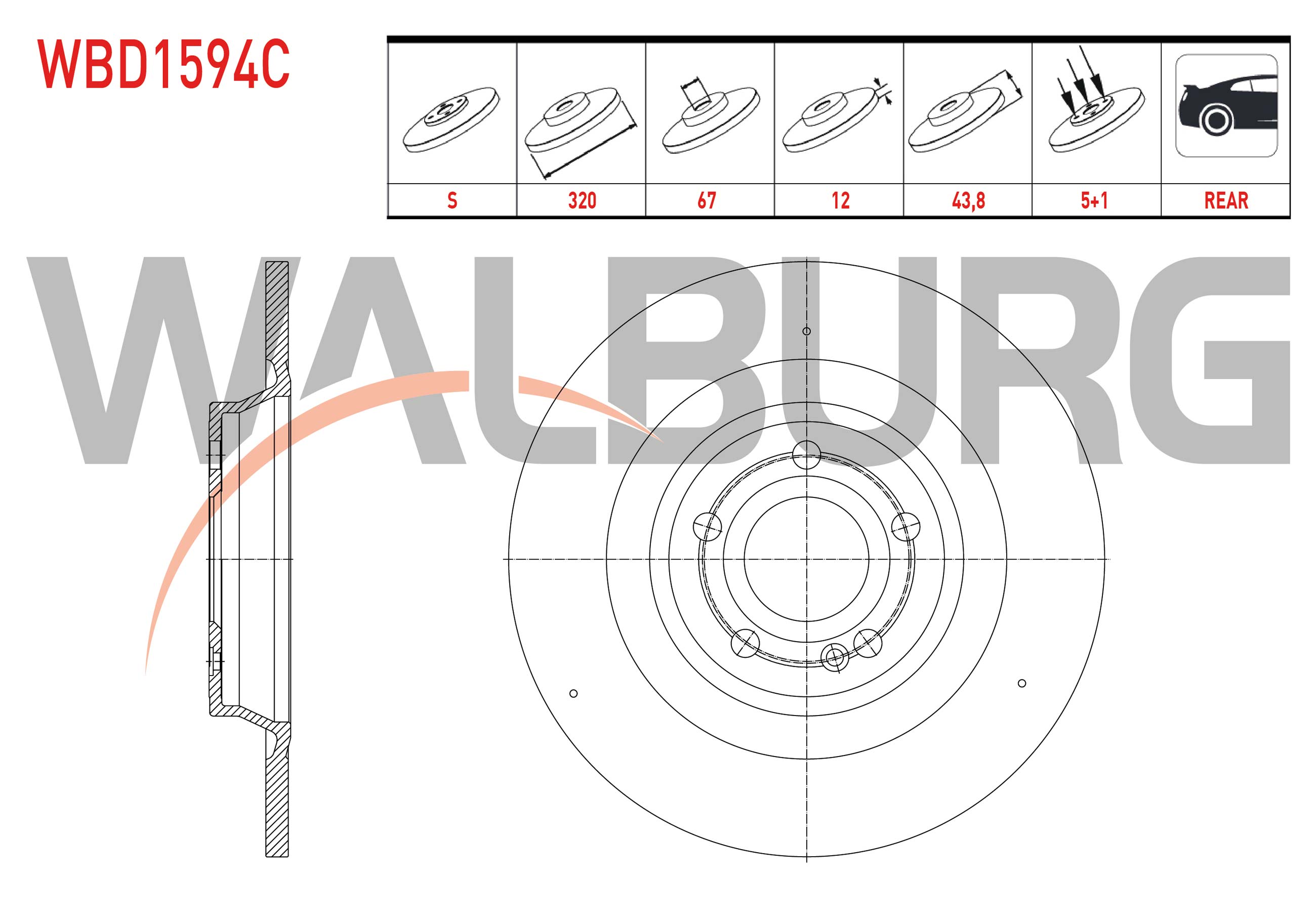 WALBURG WBD1594C | Fren Diski Arka Düz Kaplamalı 5 Bjn 320X12x67x43,8 Mercedes A (W177) 180-180 D 200 2018-/ CLA (C118) 180 D-200 2019-/ B (W247) 180-180 D 2019-/ Gla (H247) 200 2020-/ Glb (X247) 200 2020-| 2 Adet