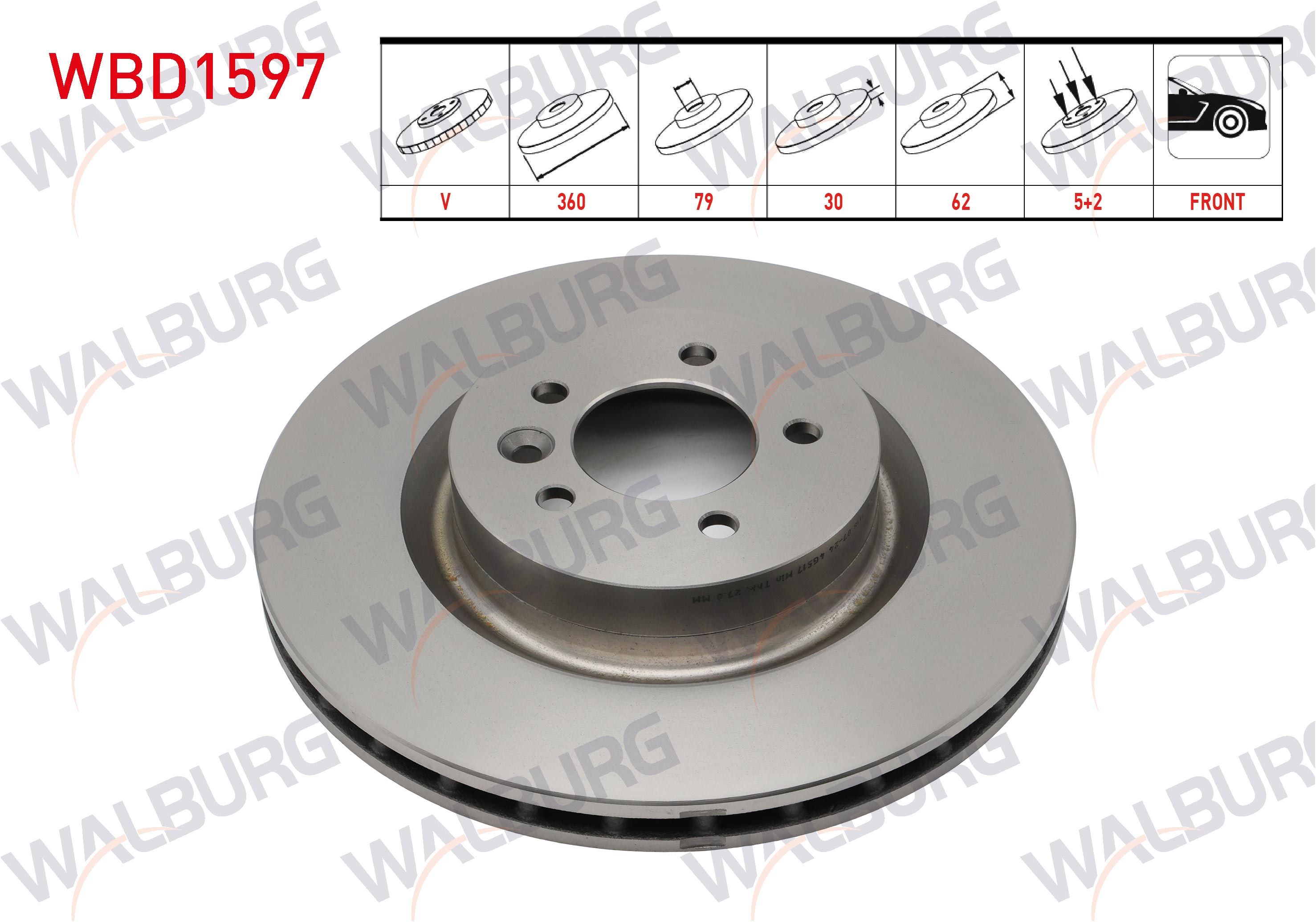 WALBURG WBD1597 | Fren Diski Ön Havalı 5 Bjn 360X30x79x62 Land Rover Discovery V 2016-/ Range Rover IV (Lg) 2013-/ Range Rover Sport (Lw) 2013-| 2 Adet Takım