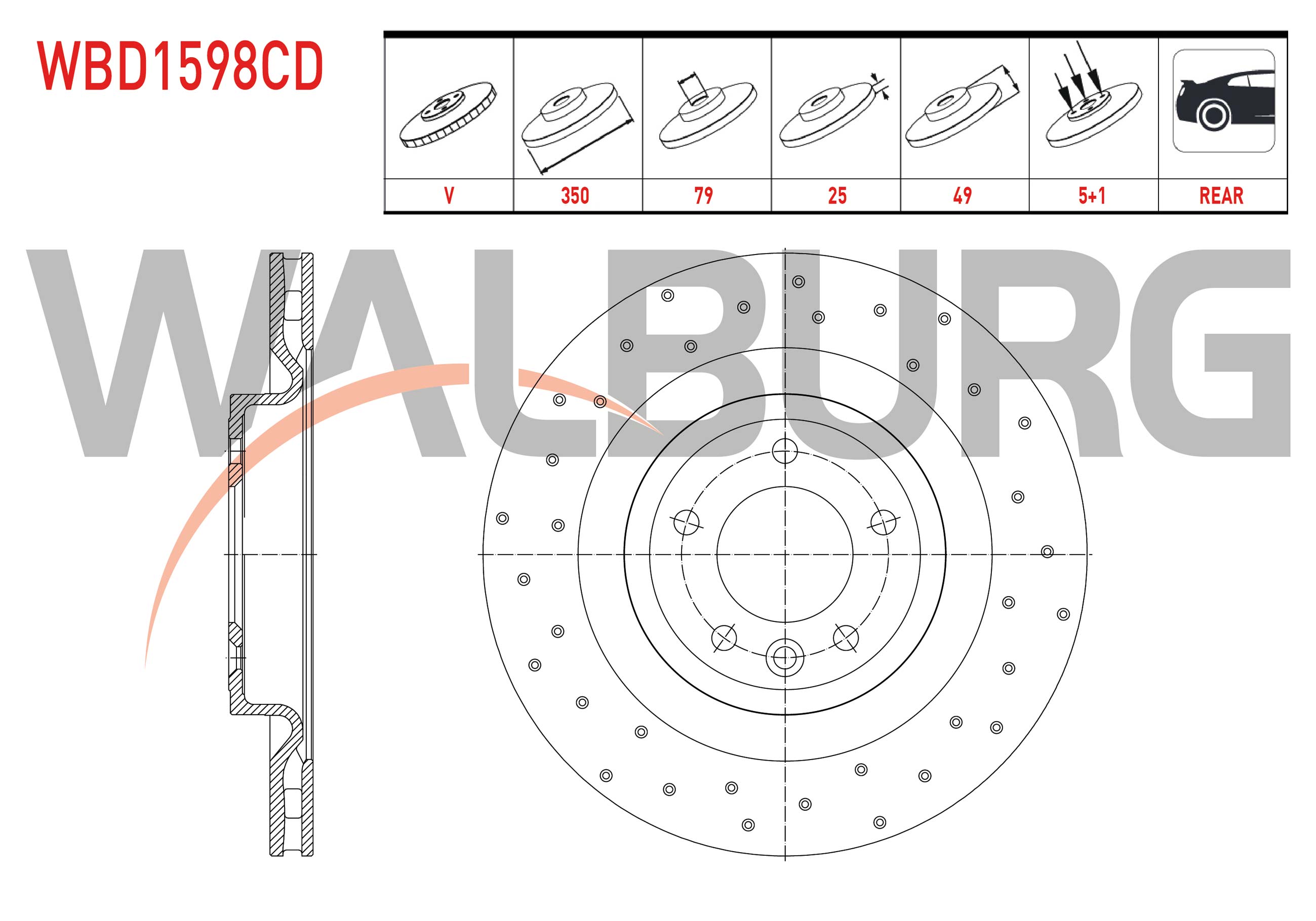 WALBURG WBD1598CD | Fren Diski Arka Havalı Kaplamalı Performans Delikli 5 Bjn 350X25x79x49 Land Rover Range Rover IV (Lg) 2013-/ Range Rover Sport (Lw) 2013-| 2 Adet Takım