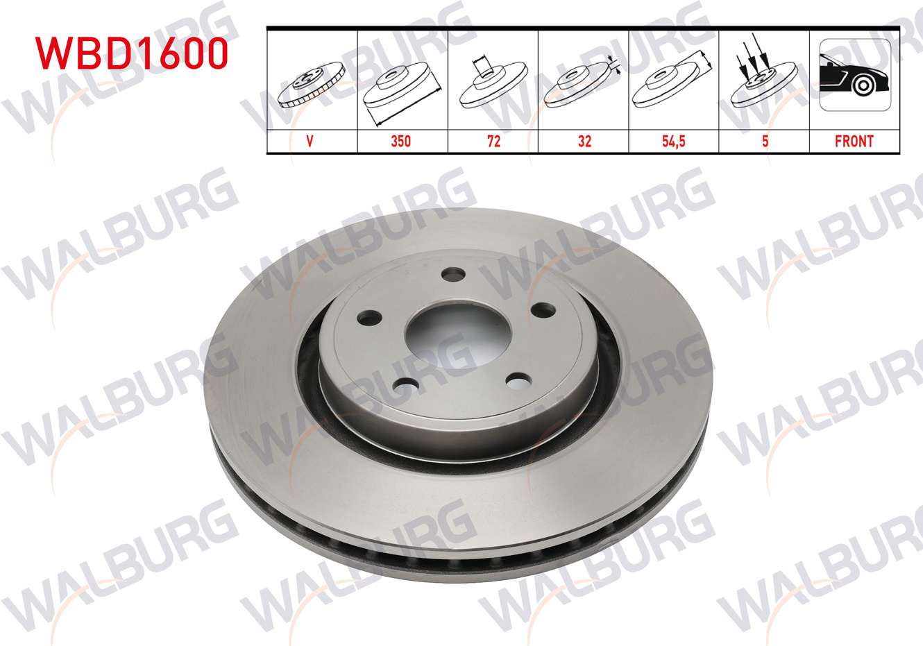 WALBURG WBD1600 | Fren Diski Ön Havalı 5 Bjn 18 Jant 350X32x72x54,5 Jeep Grand Cherokee IV (Wk,Wk2) 3.0 Crd-3.6 V6 2010-| 2 Adet