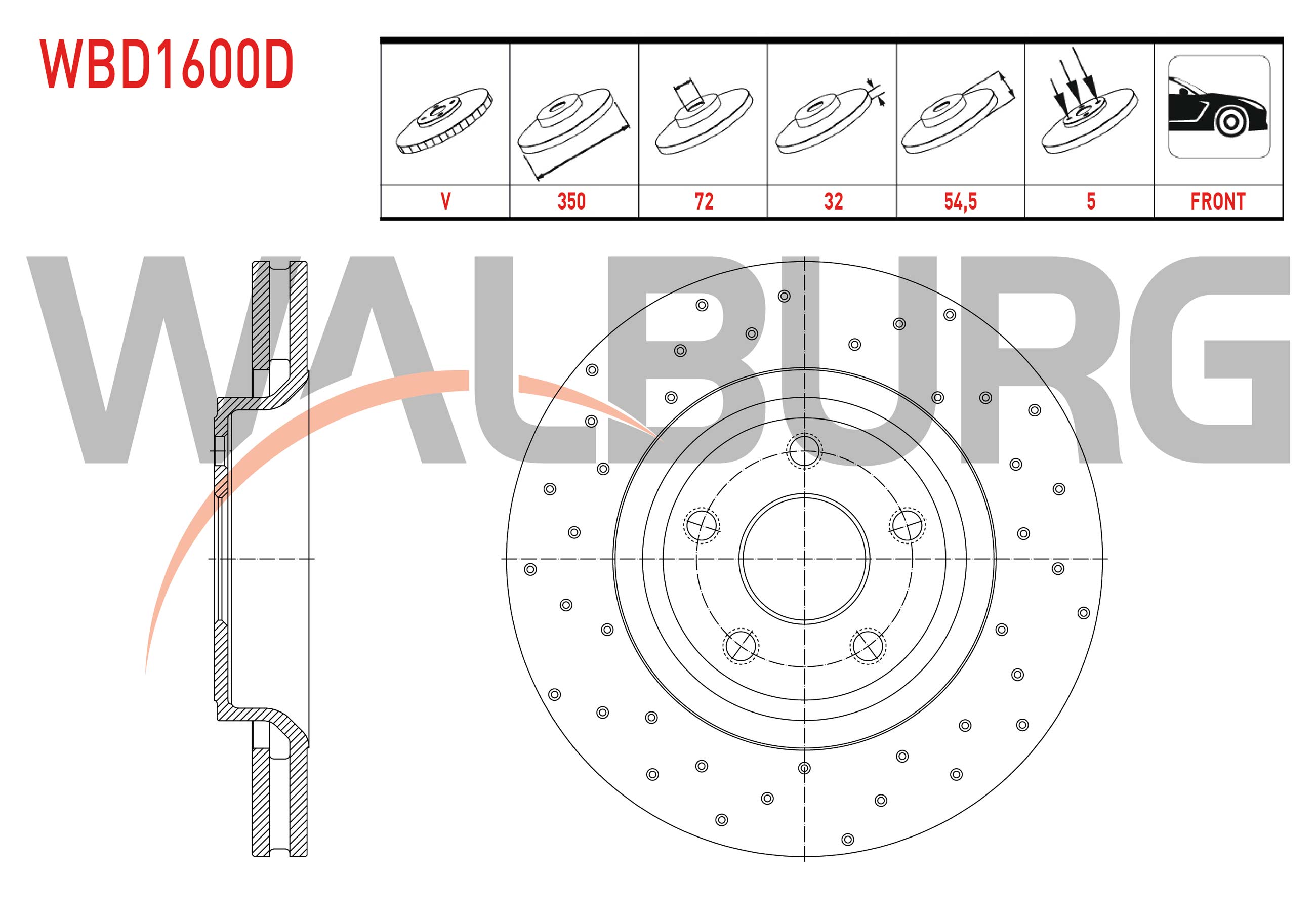 WALBURG WBD1600D | Fren Diski Ön Havalı Performans Delikli 5 Bjn 18 Jant 350X32x72x54,5 Jeep Grand Cherokee IV (Wk,Wk2) 3.0 Crd-3.6 V6 2010-| 2 Adet
