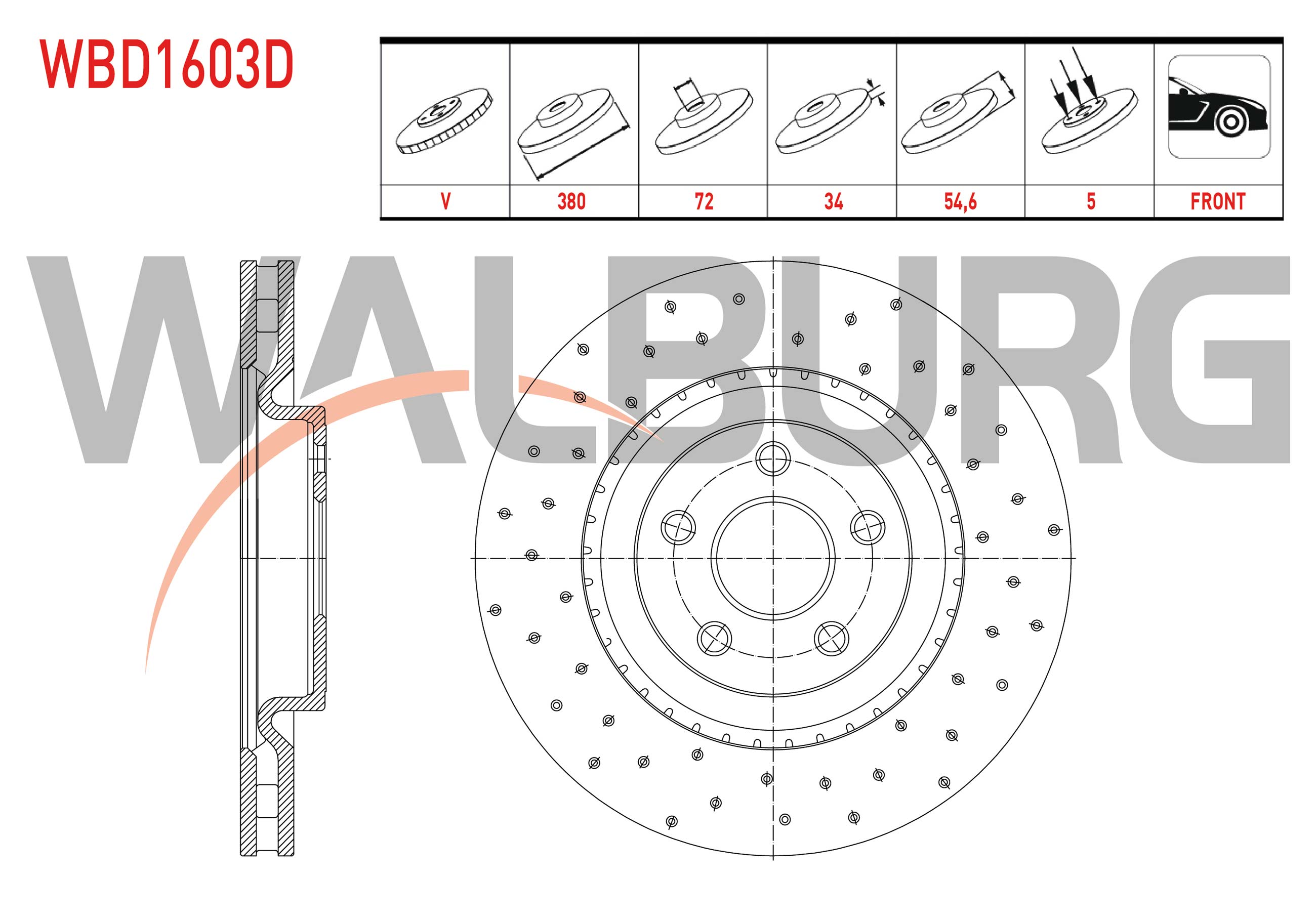 WALBURG WBD1603D | Fren Diski Ön Havalı Performans Delikli 5 Bjn 380X34x72x54,6 Jeep Grand Cherokee IV (Wk,Wk2) 3.0 Crd-3.6 V6 2010-| 2 Adet