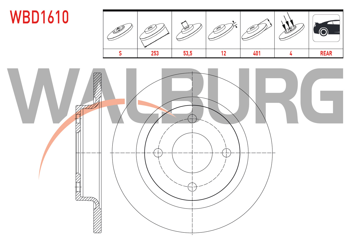 WALBURG WBD1610 | Fren Diski Arka Düz 4 Bjn 253X12x63,5X40,1 Ford Fiesta VII 1.0 Ecoboost-1.1 Tı-Vct-1.5 TDCI 2017-| 2 Adet