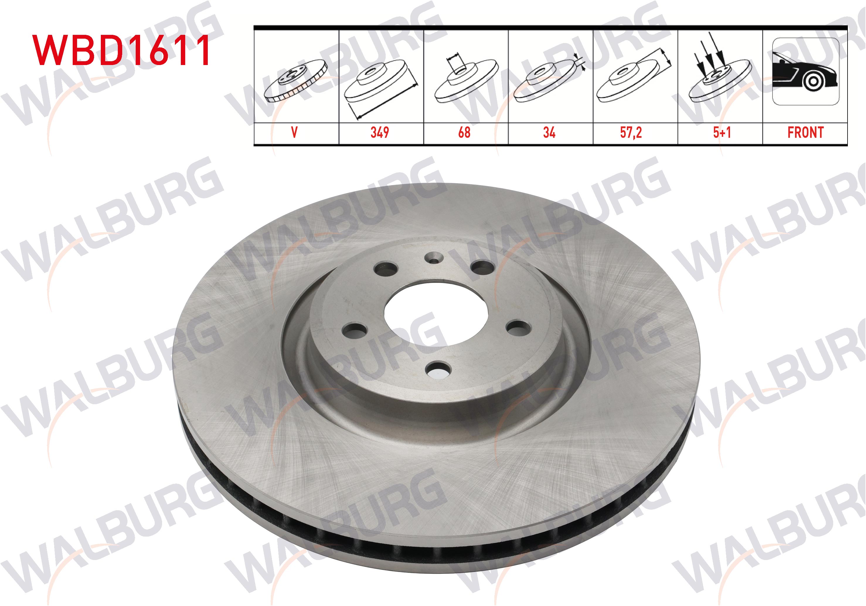 WALBURG WBD1611 | Fren Diski Ön Havalı 5 Bjn 349X34x68x57,2 Audi A4-A5-Q5-Q7 1.4 TFSI-2.0 TDI-2.0 TFSI 2015-/ A6-A7-A8 2.0 TDI-2.0 TFSI-3.0 TDI 2018-/ Volkswagen Touareg 3.0 TDI 2018-| 2 Adet Takım