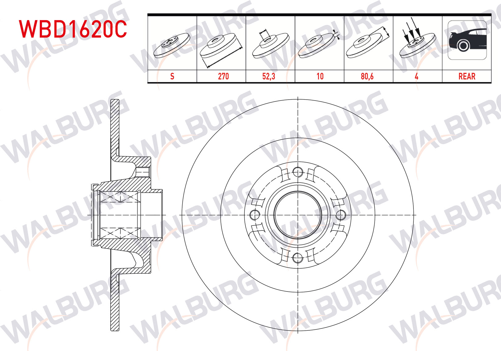 WALBURG WBD1620C | Fren Diski Arka Düz Kaplamalı Rulmanlı Poryalı 4 Bjn Manyetık ABS Okuyuculu 270X10x52,3X80,2 Renault Megane II Sw 2003-2009 / Scenic II 2003-2010 | 2 Adet