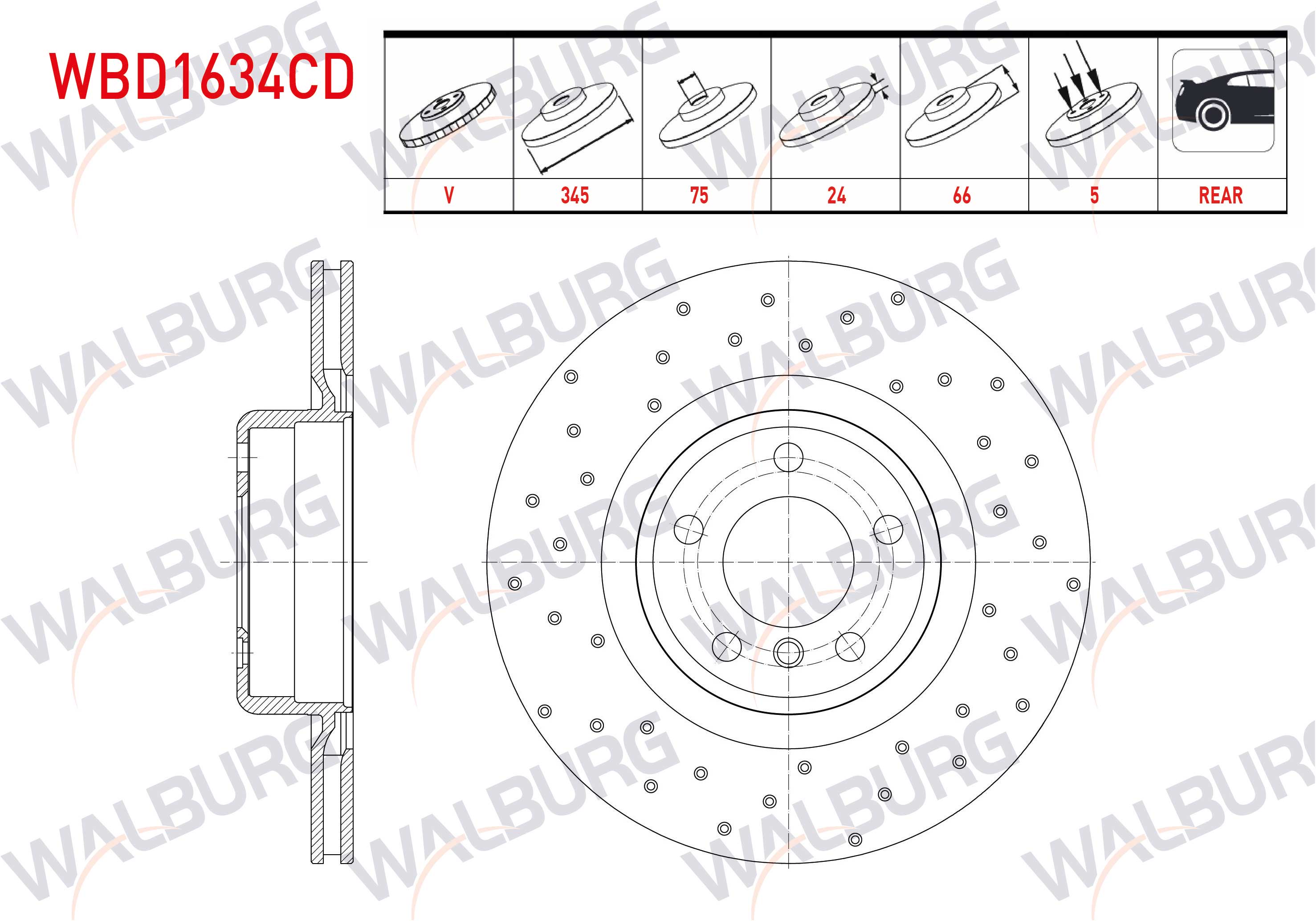 WALBURG WBD1634CD | Fren Diski Arka Havalı Kaplamalı Performans Delikli 5 Bjn 345X24x75x66 BMW 1 Serisi (F20) (F21) 11-19 / 2 Serisi (F22,F87) (F23) 12-/ 3 Serisi (F30,F80) 12-18 / 4 Serisi (F32,F82) 2013-2015 | 2 Adet