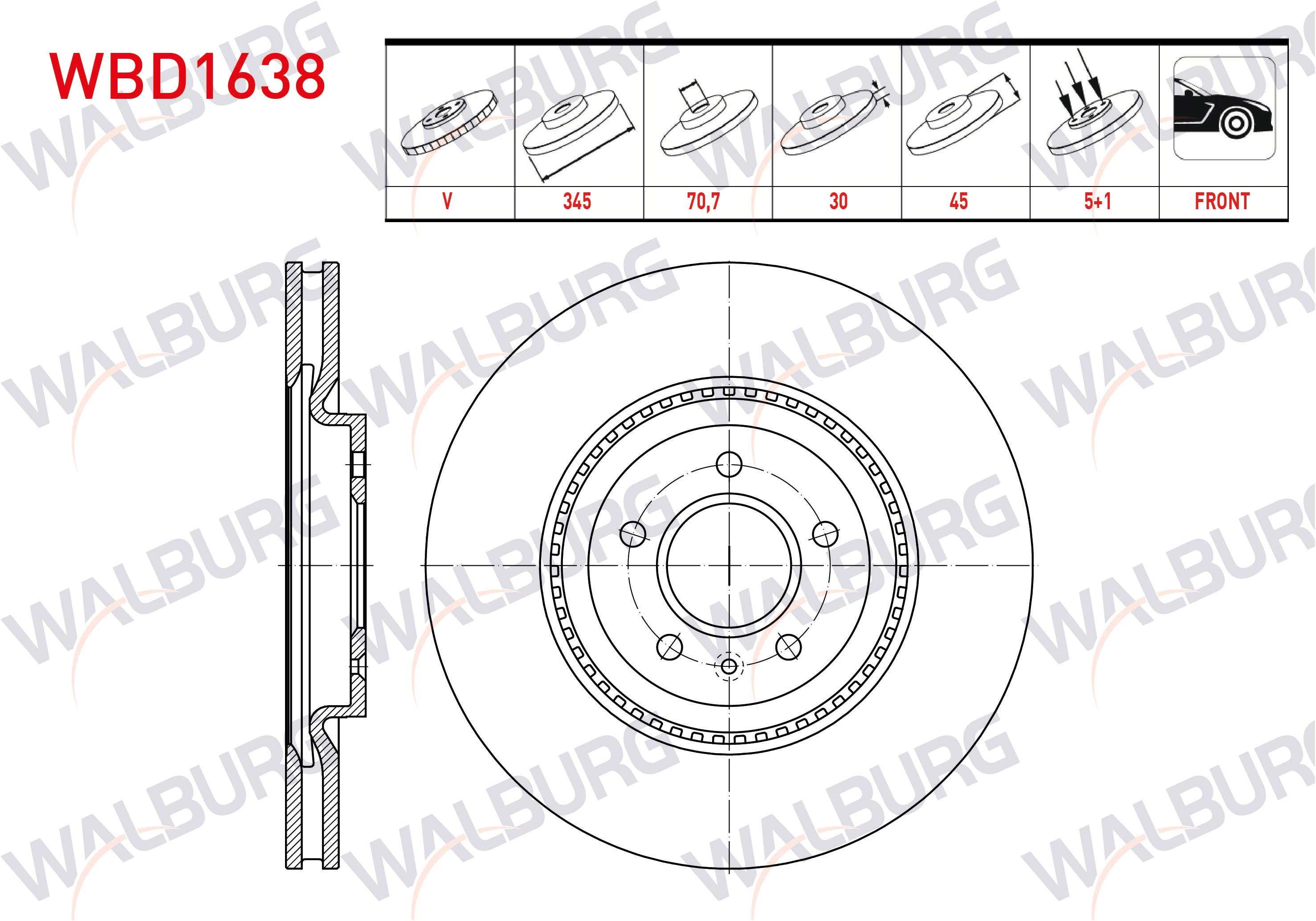 WALBURG WBD1638 | Fren Diski Ön Havalı 5 Bjn 345X30x70,7X45 Opel Insignia B (Z18) 18 Jant 2017-| 2 Adet Takım