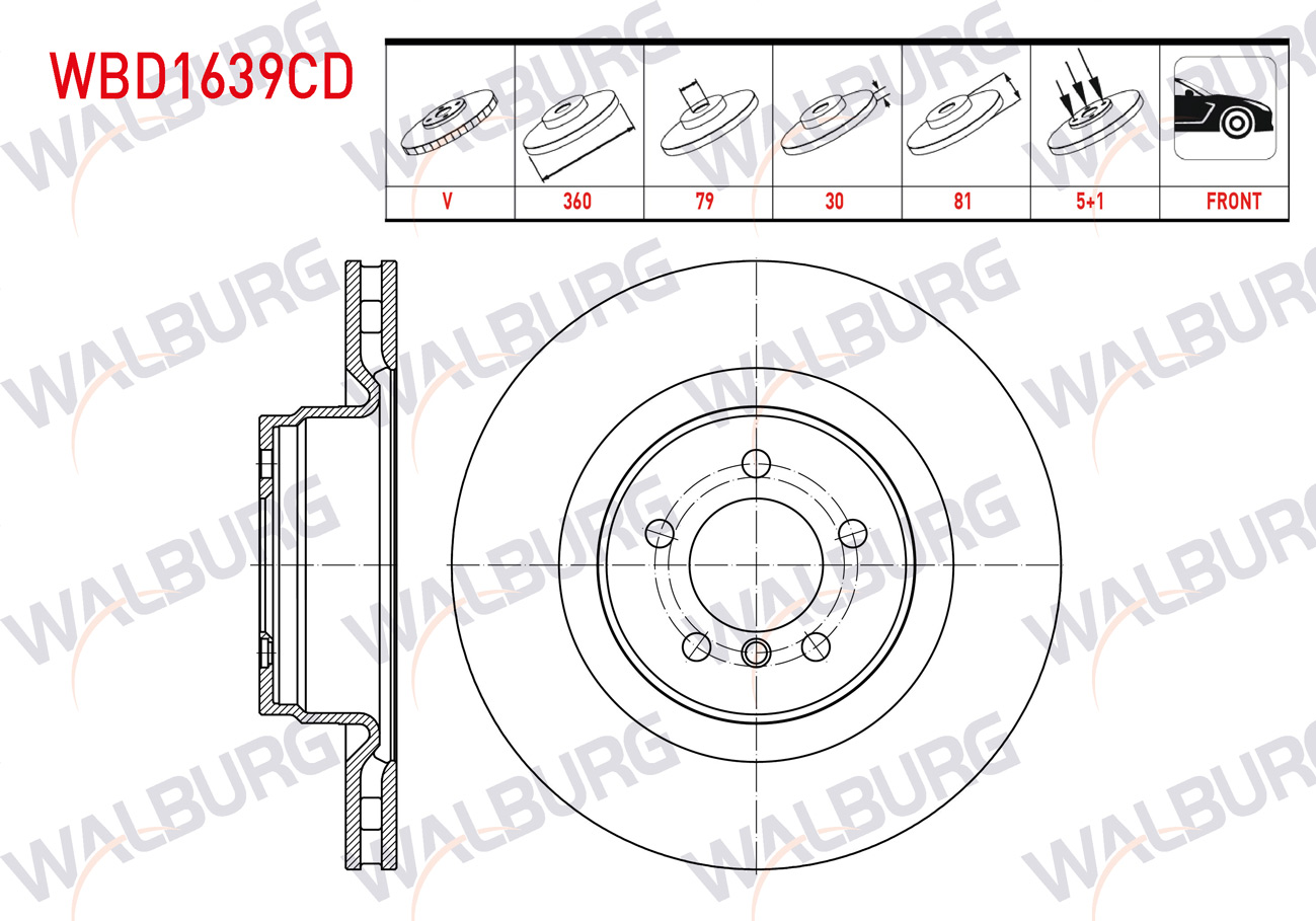 WALBURG WBD1639CD | Fren Diski Ön Havalı Kaplamalı Performans Delikli 5 Bjn 360X30x79x81 Range Rover III (L322) 3.6 4.2 5.0 4X4 2005-2012 | 2 Adet