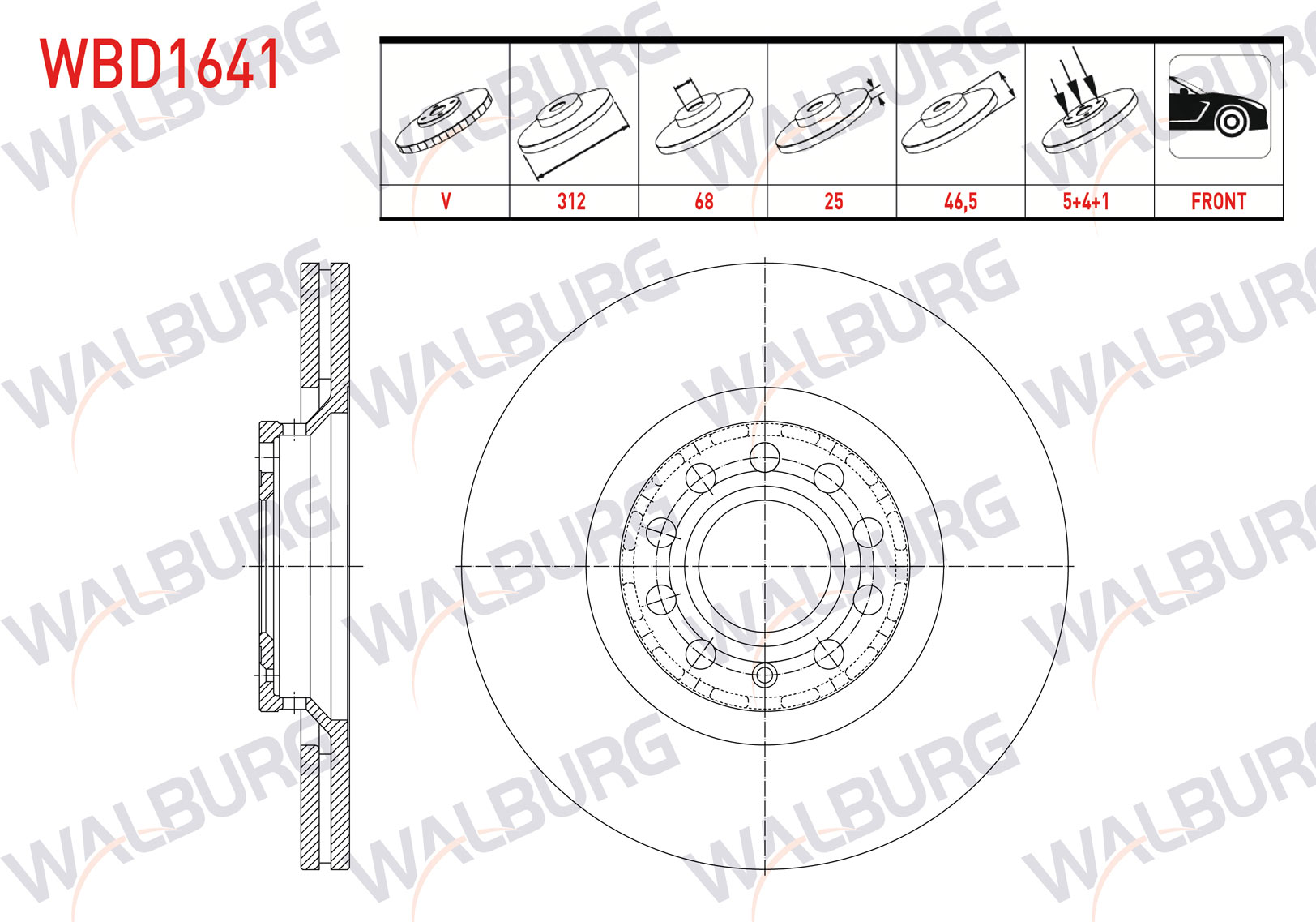 WALBURG WBD1641 | Fren Diski Ön Havalı 5 Bjn 312X25x68x46,5 Audi A4 B6 2000-2004 / A4 B7 2004-2008 / A6 C5 1997-2005 / Seat Exeo 2009-2013 / Skoda Superb 2001-2008 / VW Passat B5 1996-2005 | 2 Adet