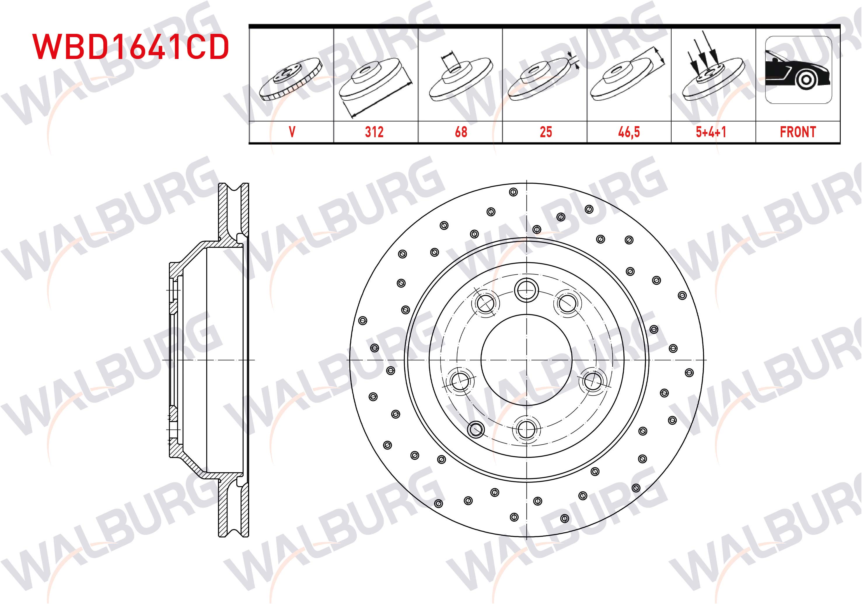 WALBURG WBD1641CD | Fren Diski Ön Havalı Kaplamalı Performans Delikli 5 Bjn 312X25x68x46,5 Audi A4 B6 2000-2004 / A4 B7 2004-2008 / A6 C5 1997-2005 / Seat Exeo 2009-2013 / Skoda Superb 2001-2008 / VW Passat B5 1996-2005 | 2 Adet
