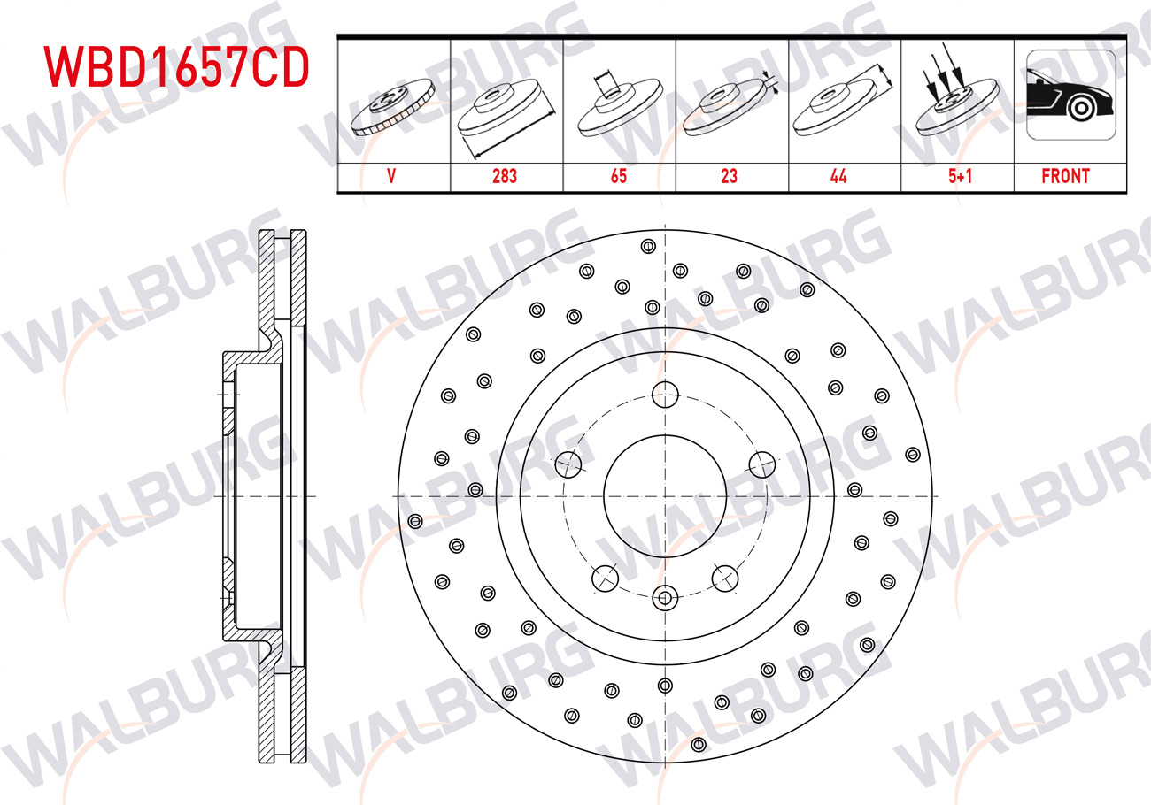 WALBURG WBD1657CD | Fren Diski Ön Havalı Kaplamalı Performans Delikli 5 Bjn 283X23x65x44 Chery Tıggo 7 Pro 2017-/ 8 Pro 2022-/ Omoda 5 2023 / Chance 2010-2014 | 2 Adet