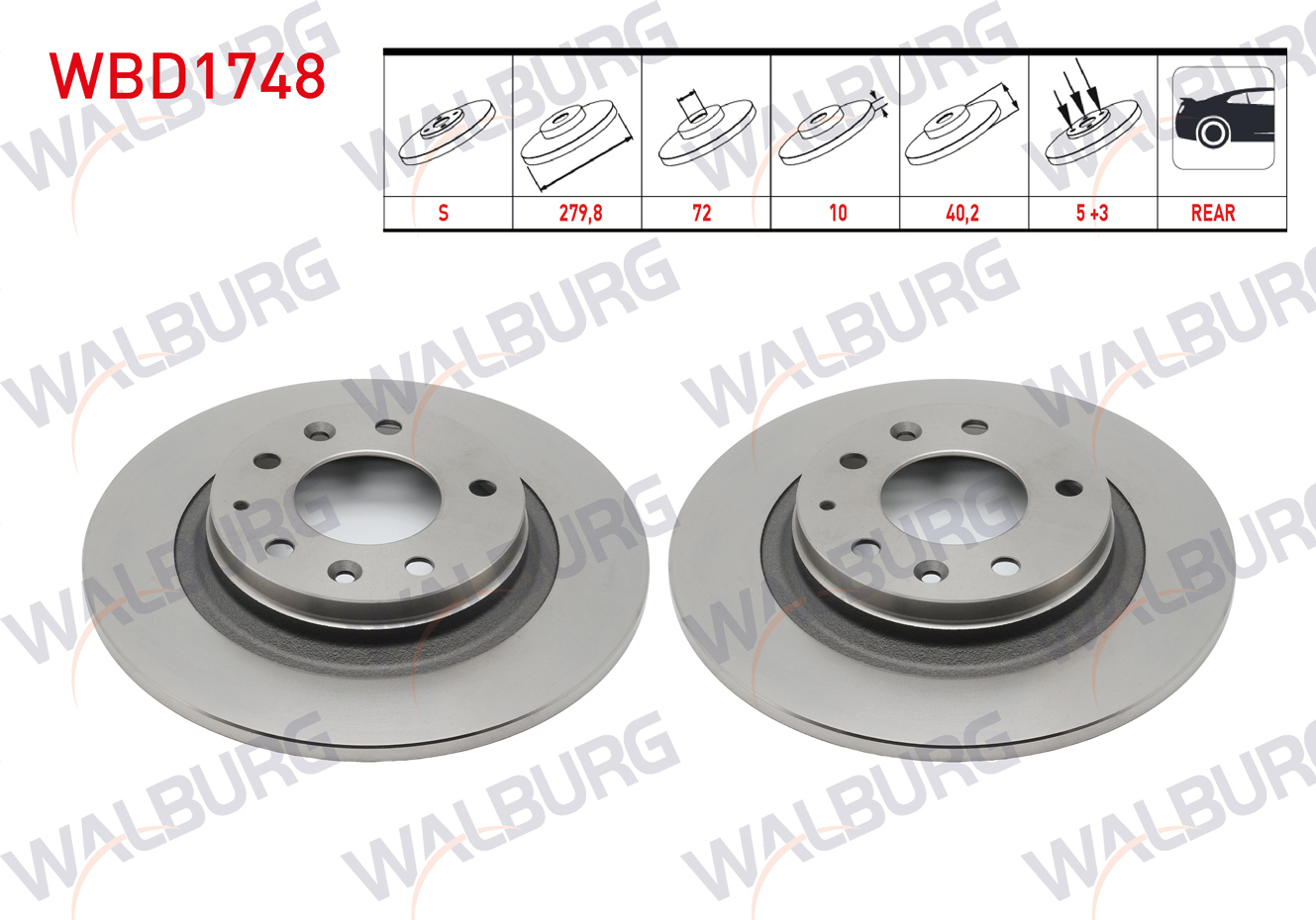WALBURG WBD1748 | Fren Diski Arka Mazda 6 2003-2008 | 2 Adet