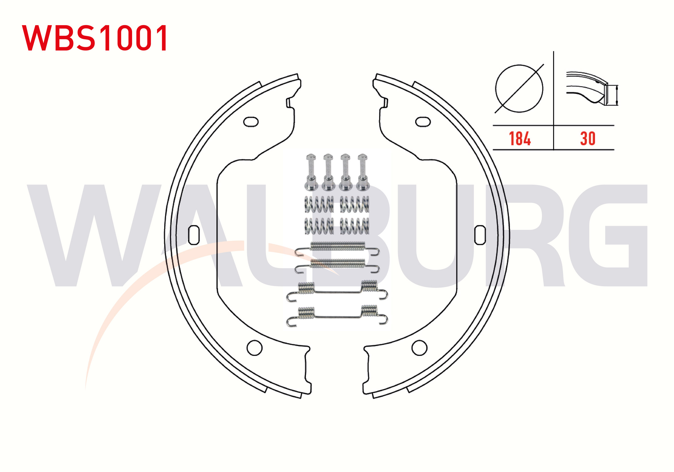 WALBURG WBS1001 | El Fren Balatası Aksesuarlı BMW 5 Serisi 520 İ 184X30 mm 2003-2010 / 5 Serisi 520 D 2003-2010 / 6 Serisi 645 Ci 2004-/ 7 Serisi 730 D 2001-2009 / Transporter V 1.9 TDI 2003-2011