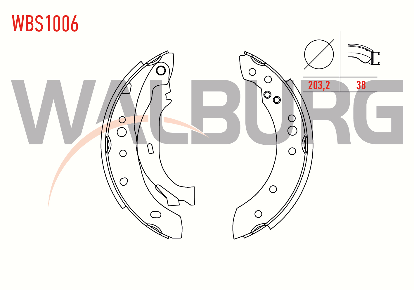 WALBURG WBS1006 | Fren Pabuç Balata Arka Levyelı 203,2X38mm Symbol II 08-12 / Laguna I 1.9 93-01 / Twingo 93-07 / Clio II 01-06 / Clio IV 12-/ Logan 04-/ Logan Mcv II 13-/ Sandero II 12-/ Peugeot 1007 05-/ Citroen C2 02-12 / C3 02-10