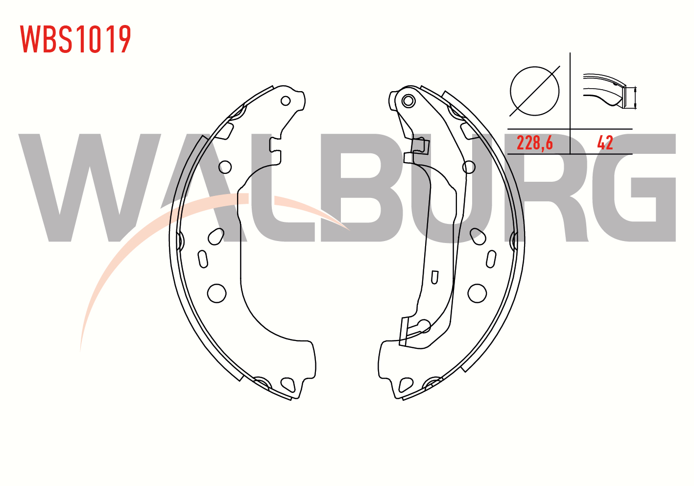 WALBURG WBS1019 | Fren Pabuç Balata Arka Ford Focus II (Da) 1.4İ Levyelı 228,6X42 mm 2004-2011 / Focus II (Da) 1.6İ 2004-2011 / Focus II (Da) 1.6 TDCI 2004-2011