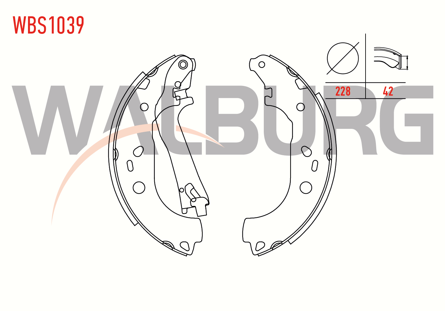WALBURG WBS1039 | Fren Pabuç Balata Arka Fiat Doblo (119,223) 1.3 Mjt Levyelı 228X42 mm 2001-2010 / Doblo 1.6 Mjt 2001-2010 / Combo D 1.6 CDTI 2012 -