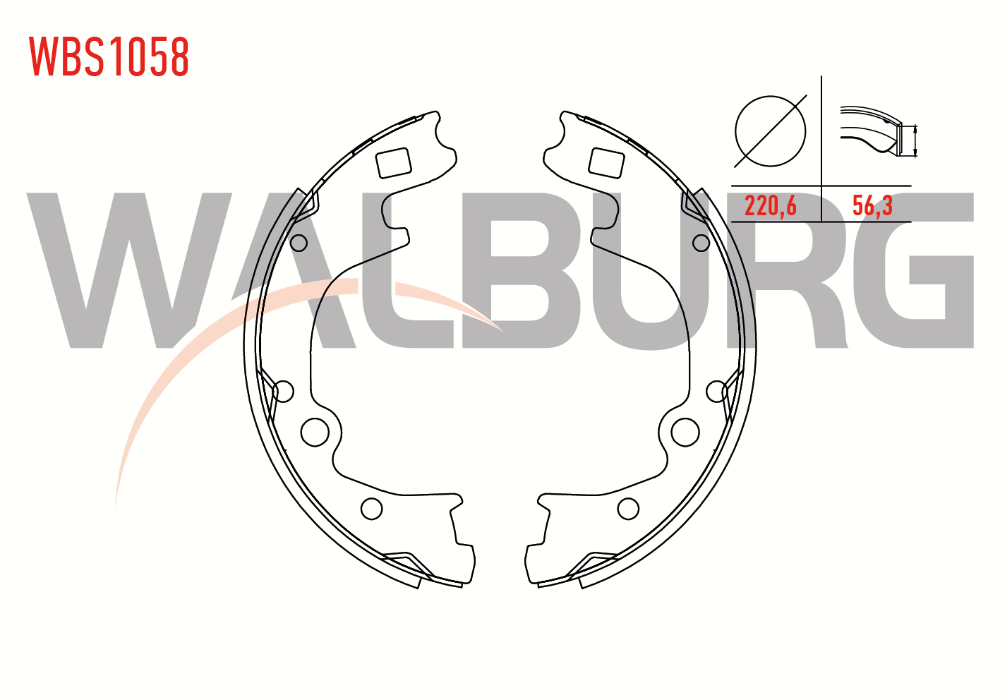 WALBURG WBS1058 | Fren Pabuç Balata Arka 220,6X56,3 mm Hyundai H100 2.5 D Kamyonet 2004-/ Kia K2500 2.5 2003-/ K2500 2.7 Çift Teker 1993-/ Mazda E 2200 (Sr2) 2.2 D 1984-2004