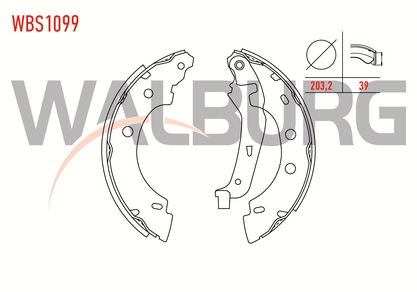 WALBURG WBS1099 | Fren Pabuç Balata Arka Renault Kangoo (Kc0 / 1) 1.4İ Levyelı 203,2X39 mm 1998-2008 / Kangoo 1.5 DCI-1998-2008 / Kangoo 1.9 D-1998-2008