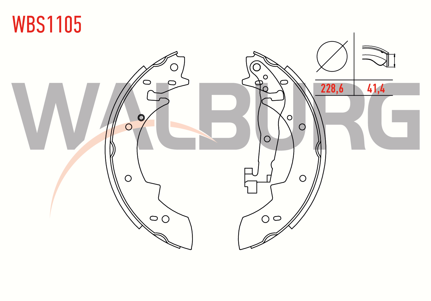 WALBURG WBS1105 | Fren Pabuç Balata Arka Renault Express (F40,G40) 1.4 Levyelı 228,6X41,4 mm 1985-1998 / Express (F40,G40) 1.9 D 1985-1998 / R21 (B48,L48) Concorde 1.7 Ts 1986-1993 / R21 (B48,L48) Concorde 1.7 Gts 1986-1993