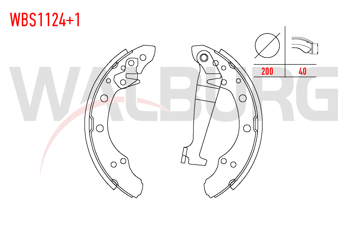WALBURG WBS1124+1 | Fren Pabuç Balata Arka + 1mm Kalın Volkswagen Golf III 1.6İ Levyelı 200X40 mm 1991-1999 / Golf III 1.9 TD-1991-1999 / Fabia 1.4 TDI-1999-2007 / Fabia II 1.4 TDI-2006-2015 / Favorit Pick Up 1.3 1992-1997