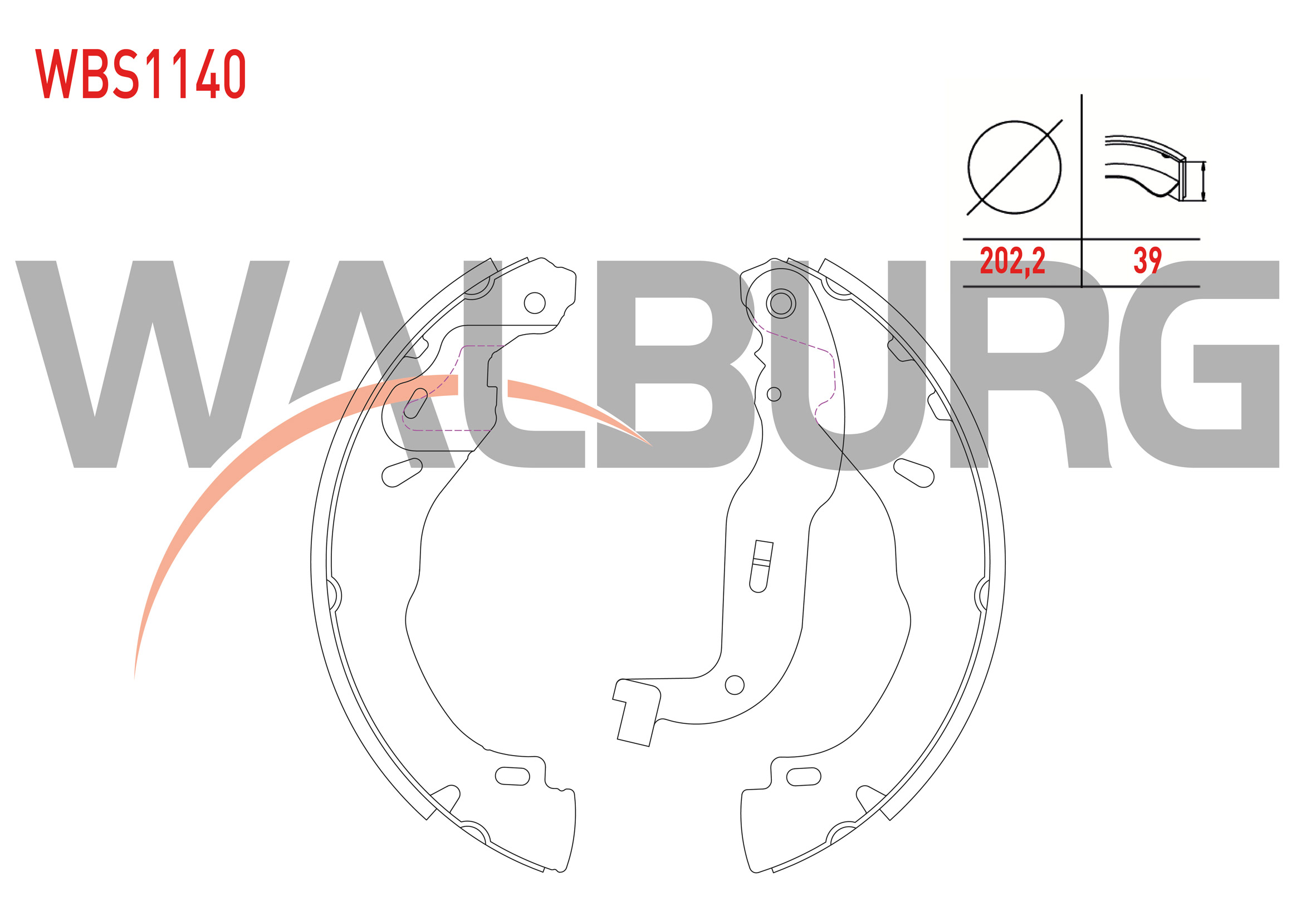 WALBURG WBS1140 | Fren Pabuç Balata Levyelı Arka 202,2X39 Renault Clio V 1.0 Sce-1.0 TCE-1.3 TCE-1.5 Blue DCI 2020 -