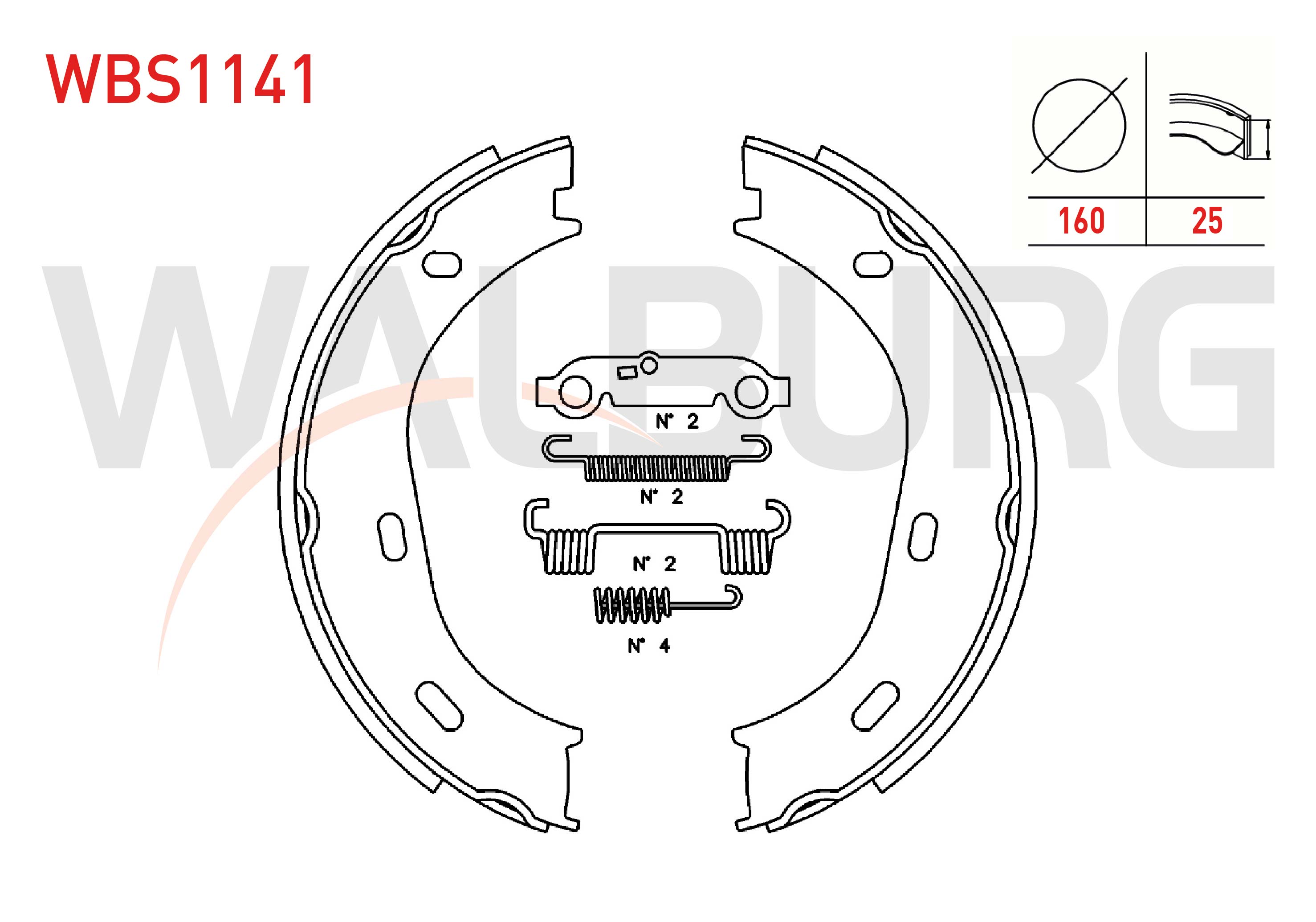 WALBURG WBS1141 | El Fren Balata Arka Aksesuarlı 160X25mm Mercedes (W123) 1977-1985 / S Serisi (W116) 1972-1980 / S Serisi (W126) 1981-1991 / S Serisi (W220) 1998-2005
