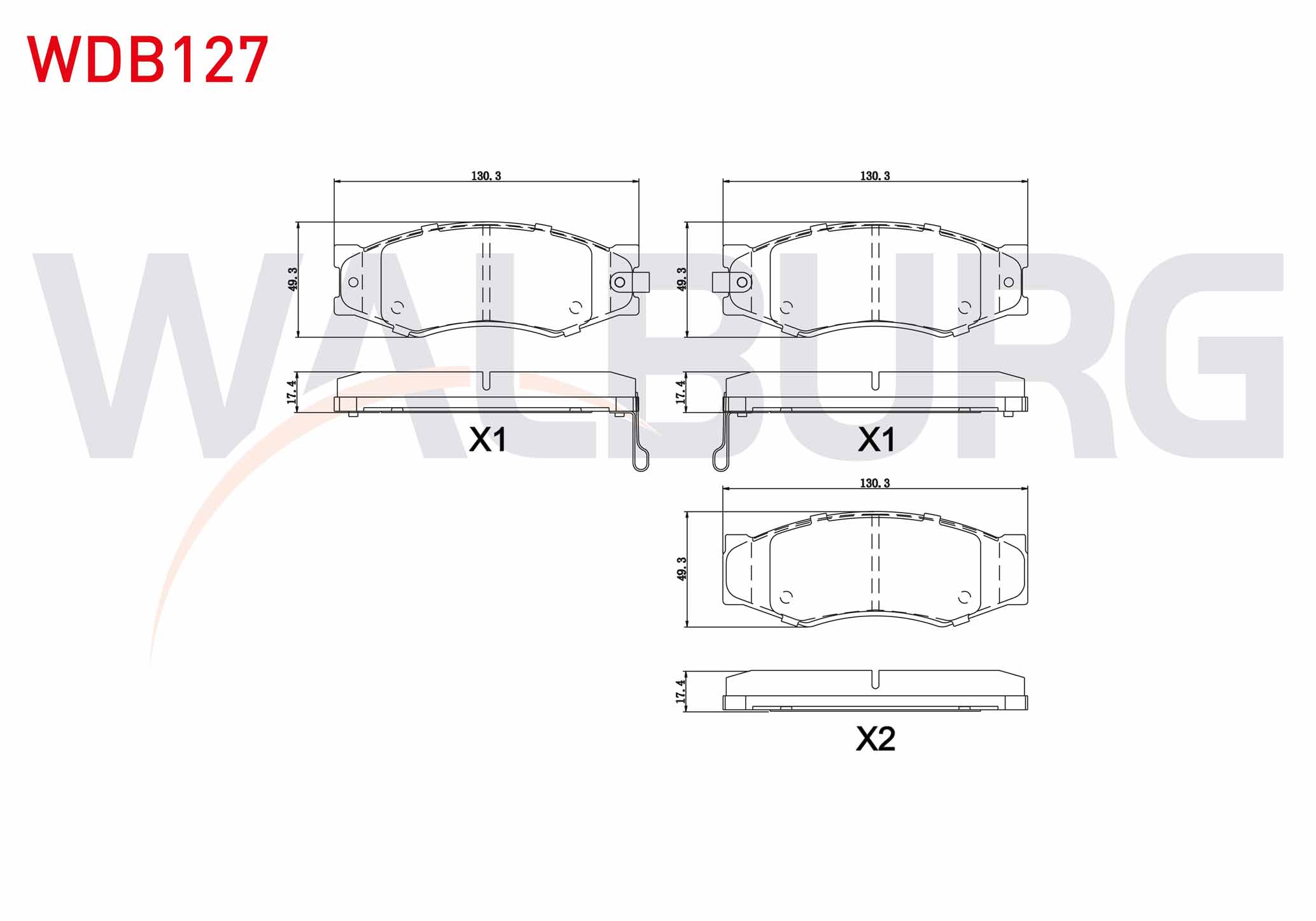 WALBURG WDB127 | Fren Balata Ön Ikazlı Nissan Navara (D22) 2.5 DCI 1997-2004 / Pick Up (D21) 2.5 D 1985-1998 / Vanette (C22) 2.0 D 1983-1988 / Vanette (C22) 1.5 1983-1988