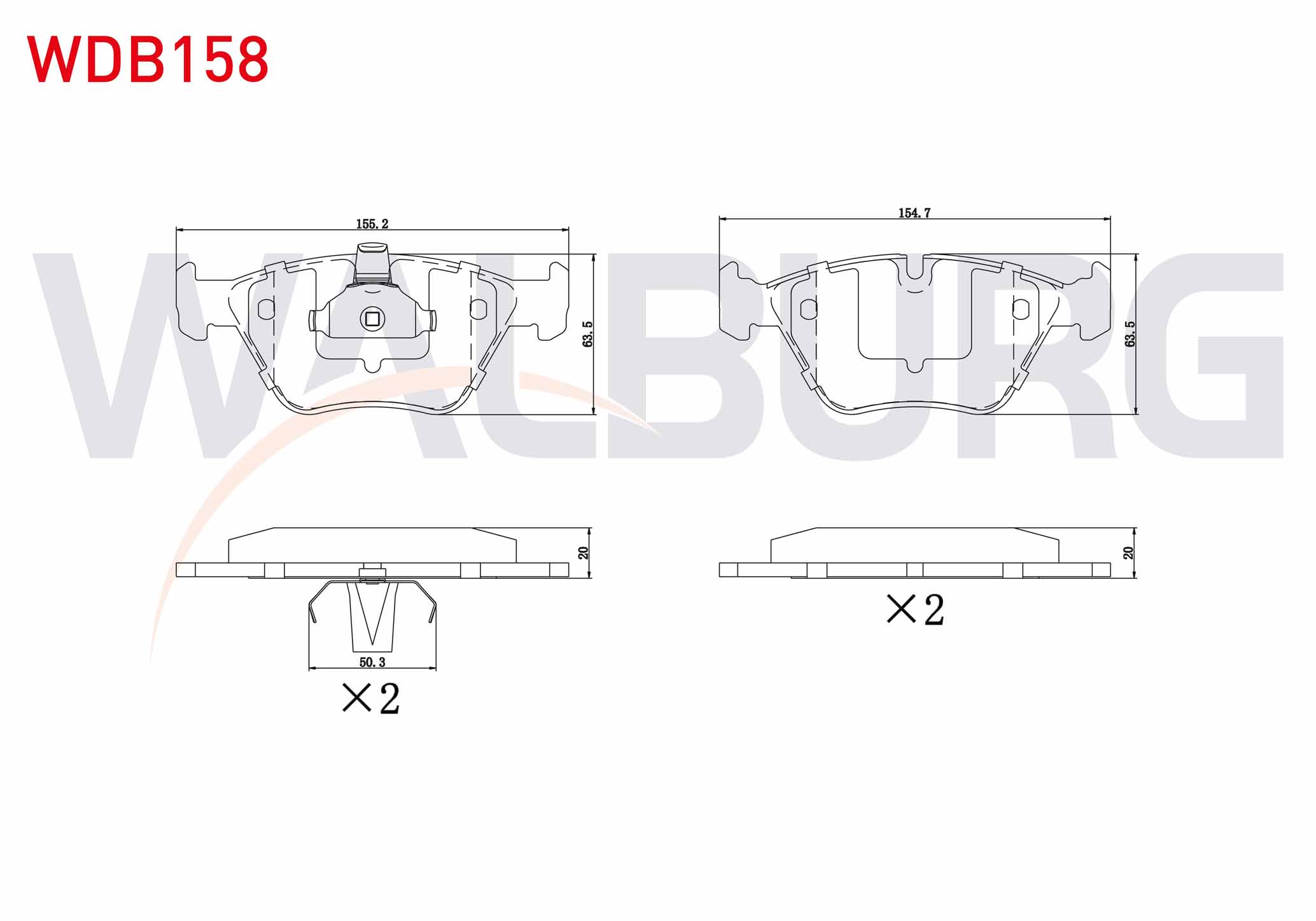 WALBURG WDB158 | Fren Balata Ön BMW 5 Serisi (E39) 525 D 1995-2003 / (E39) 520 İ 1995-2003 / (E39) 523 İ 1995-2003