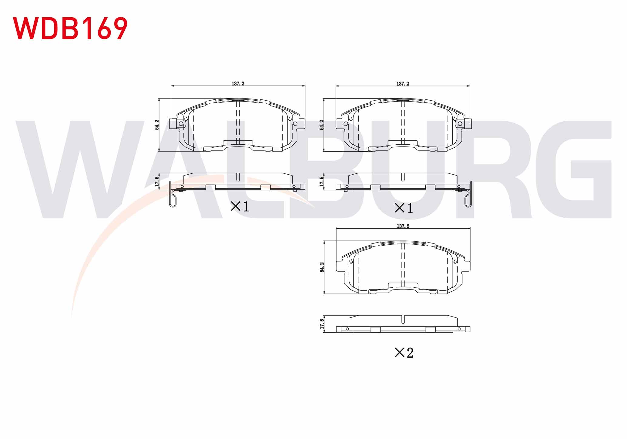 WALBURG WDB169 | Fren Balata Ön Ikazlı Tel Delikli Nissan Juke 1.5 DCI 2010-/ Juke 1.6 Dıg-T 2010-/ Juke 1.6 2010-/ Maxıma (J30) 3.0İ V6 1988-1994 / 200 Sx (S13) 1.8 1988-1994