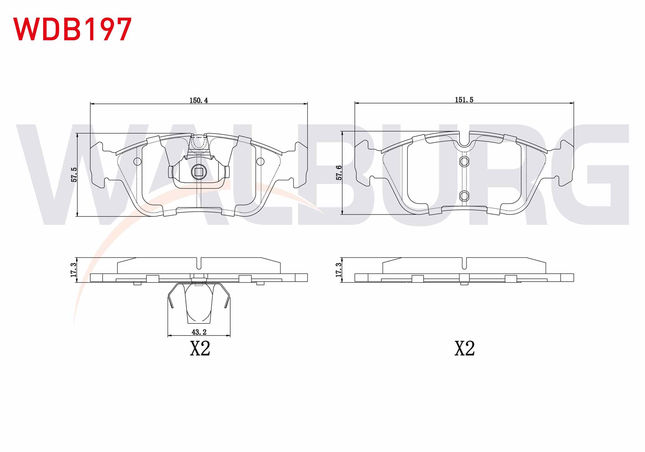 WALBURG WDB197 | Fren Balata Ön BMW 3 Serisi (E36) 318 İ 1990-1998 / (E36) 320 İ 1990-1998 / 3 Serisi (E46) 316 İ 1998-2005 / (E46) 318 İ 1998-2005 / (E46) 320 D 1998-2005 / (E46) 325 İ 1998-2005 / (E46) 330 Cd 1998-2005