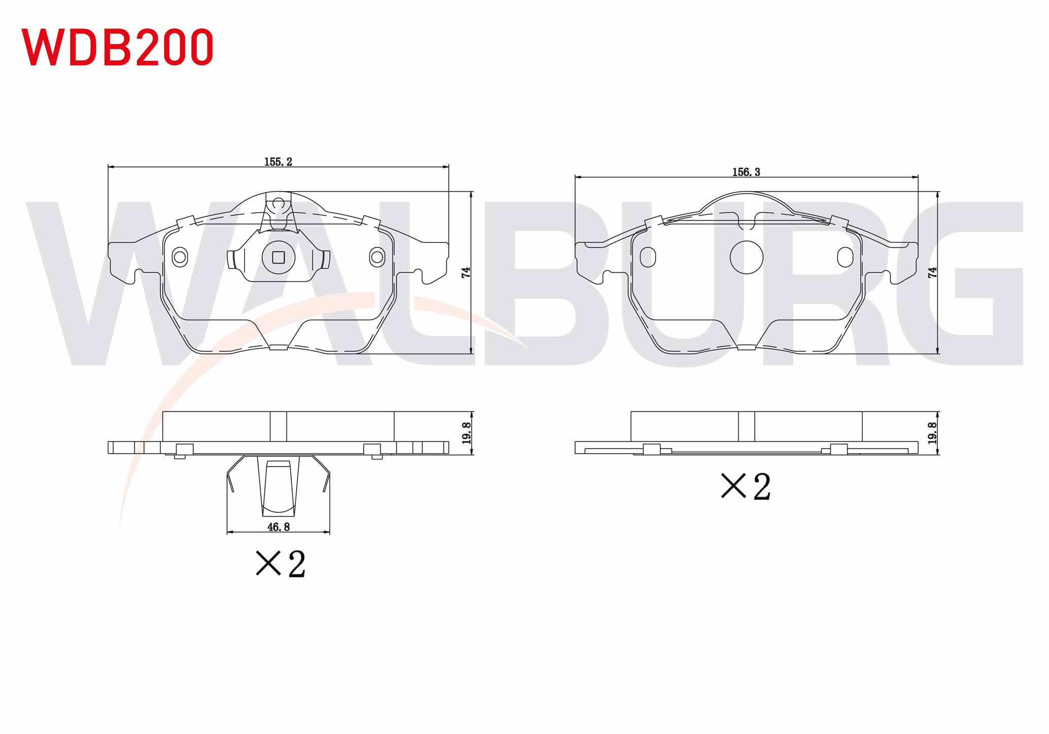 WALBURG WDB200 | Fren Balata Ön Opel Vectra B 2.0İ 1995-2003 / Vectra B 2.5 V6 1995-2003 / Calıbra A 2.0İ 1995-2003
