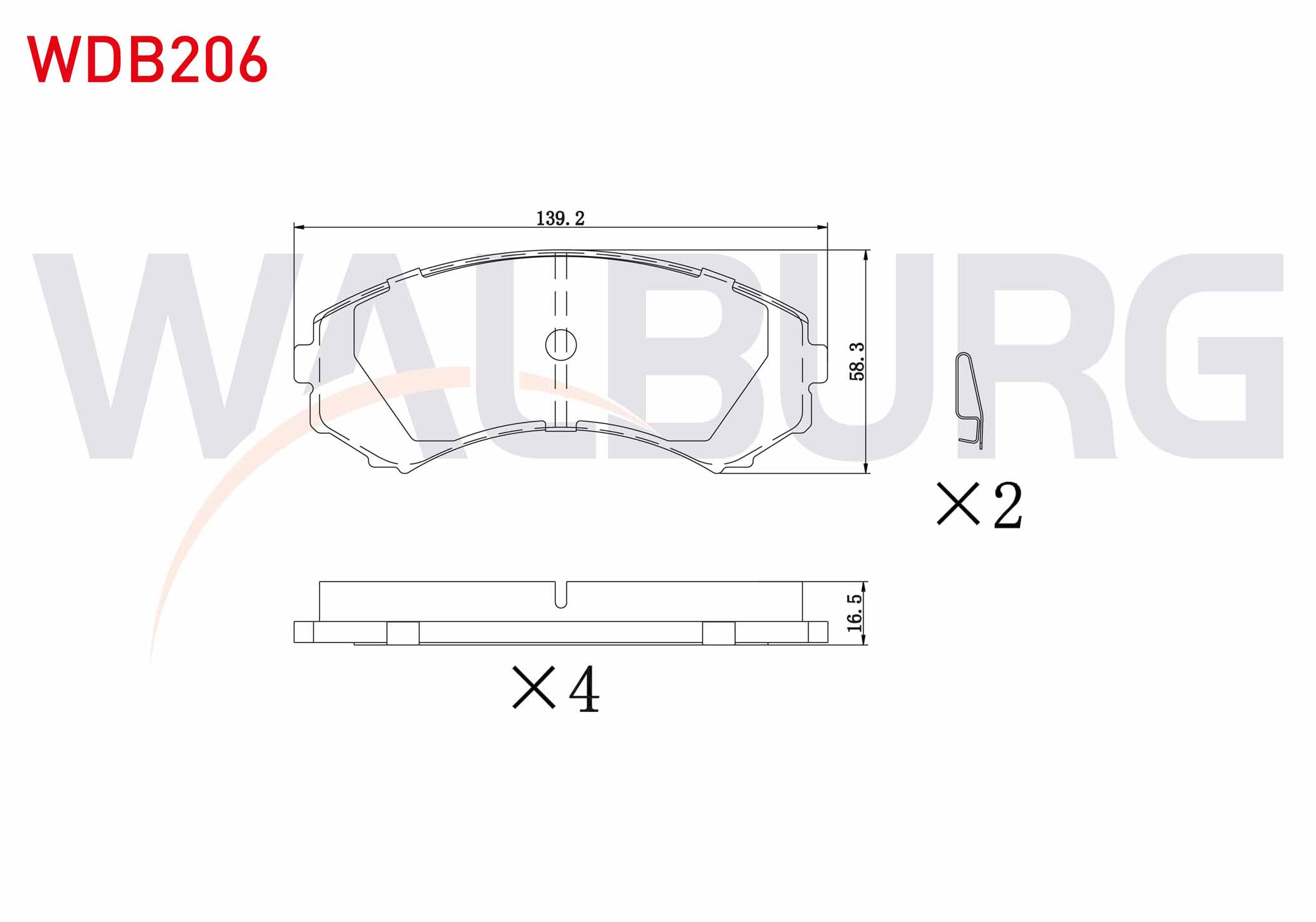 WALBURG WDB206 | Fren Balata Ön Mitsubishi (V7w,V6w) 3.2 Dı-D 2000-2007 / Pajero III 2.5 TDI 2000-2007 / Pajero III 3.5 GDI 2000-2007 / Mazda E 2200 (Sr2) 2.2 D 1984-2004