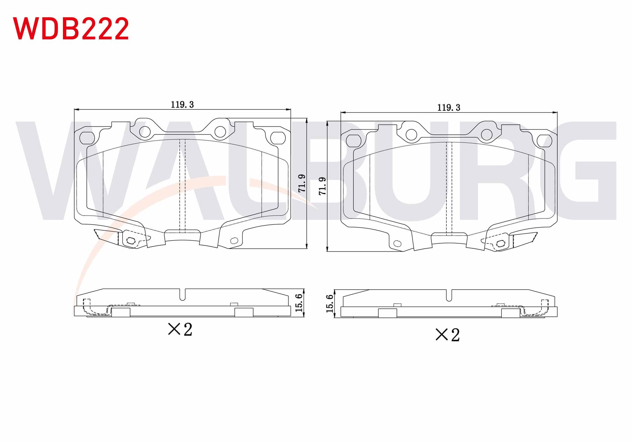 WALBURG WDB222 | Fren Balata Ön Ikazlı Toyota Hı-Lux Pick Up 2.5 D 1983-2005 / 2.5 D-4D 1983-2005 / Land Cruiser (_J7_) 2.4İ 1984-1996 / Land Cruiser 90 (_J9_) 3.0 TD 1996-2002 / 3.0 D 1996-2002 / 3.0 D-4D 1996-2002