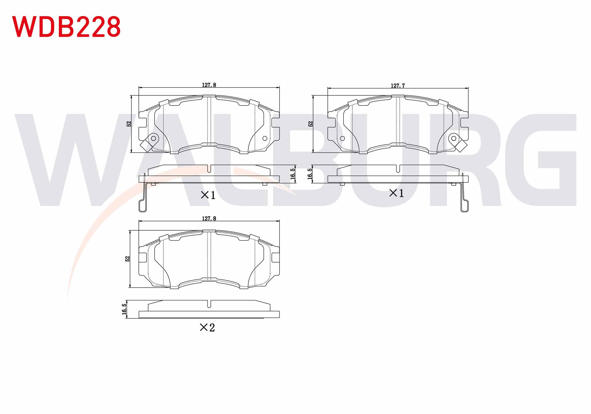 WALBURG WDB228 | Fren Balata Ön Ikazlı Mitsubishi Lancer IV (C6a,C7a) 1.8 Gtı 1988-1994 / Lancer V (Cb / Da) 1.8İ 1992-1996 / Galant V (E5a,E7a,E8a) 1.8 1992-1996