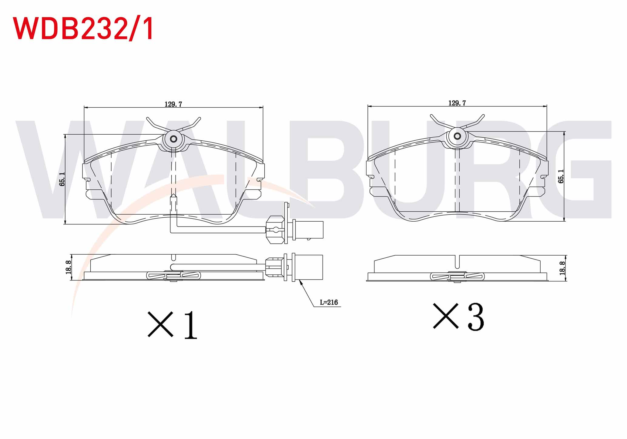 WALBURG WDB232/1 | Fren Balata Ön Fişli Volkswagen Transporter IV (70Xb,70Xc,7Db,7Dw) 2.5 D 1990-2003 / Transporter IV (70Xb,70Xc,7Db,7Dw) 2.5 TDI 1990-2003