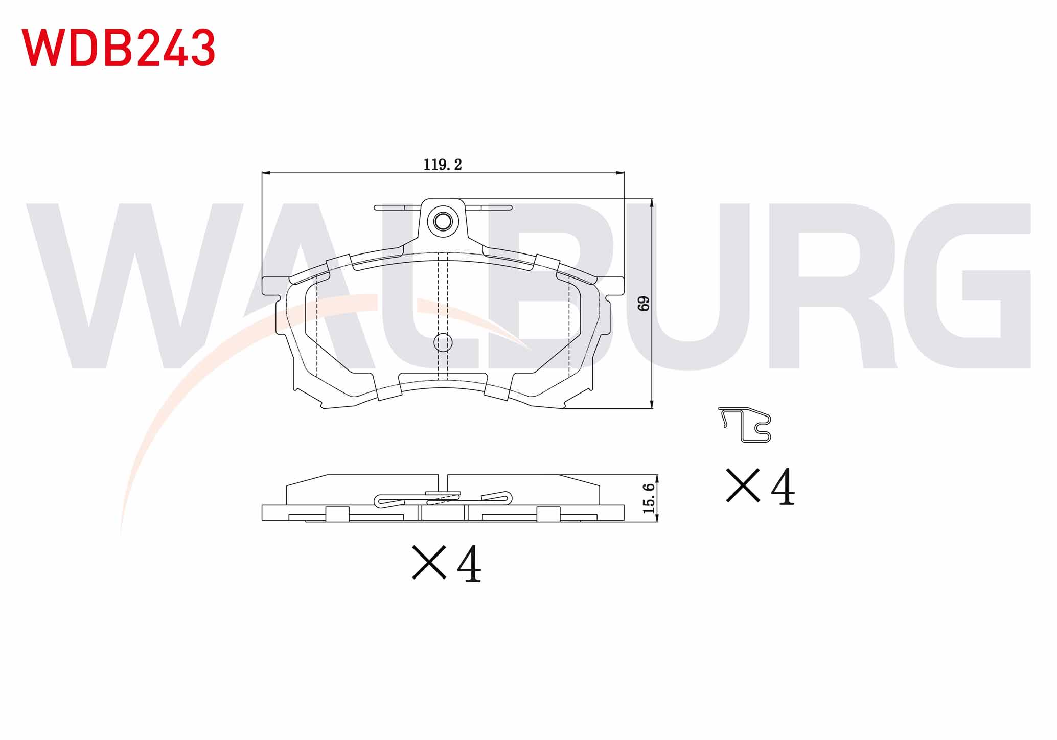 WALBURG WDB243 | Fren Balata Ön Mitsubishi Carisma (Da) 1.6 1995-2006 / Carisma (Da) 1.9 TD 1995-2006