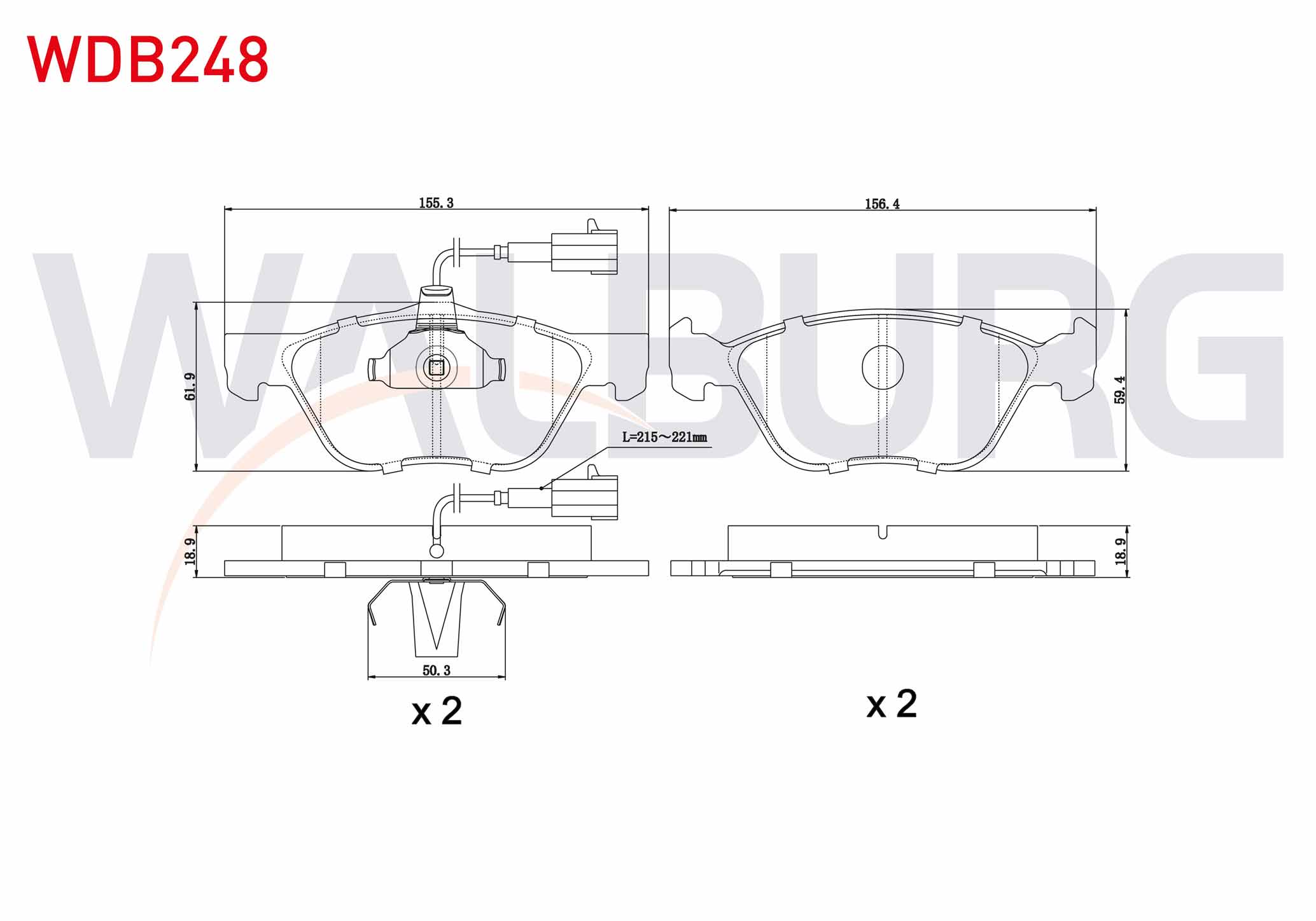 WALBURG WDB248 | Fren Balata Ön Fişli Fiat Marea (185) 2.0İ 150 Hp 1996-2007 / Bravo (182) 2.0İ 20V Hgt 1995-2004 / Alfa Romeo 156 (932) 1.9 JTD 1997-2005 / 147 (937) 1.6 2001-2010 / 147 (937) 1.9 JTD 2001-2010