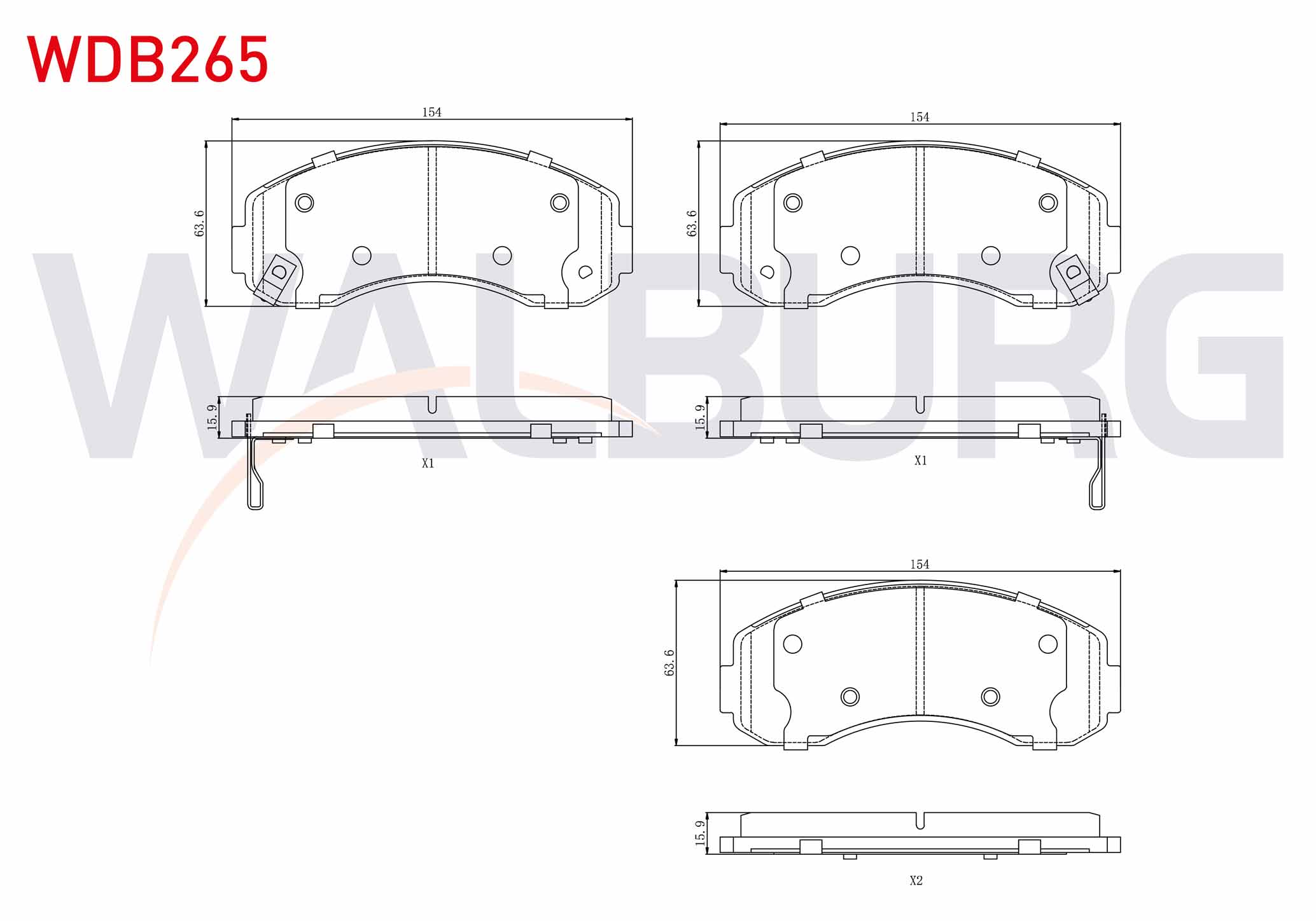 WALBURG WDB265 | Fren Balata Ön Ikazlı Kia K2500 2.5 D 2003-/ Bongo K2500 2.4 D 2003-/ Bongo K2500 2.5 Tcı 2003 -