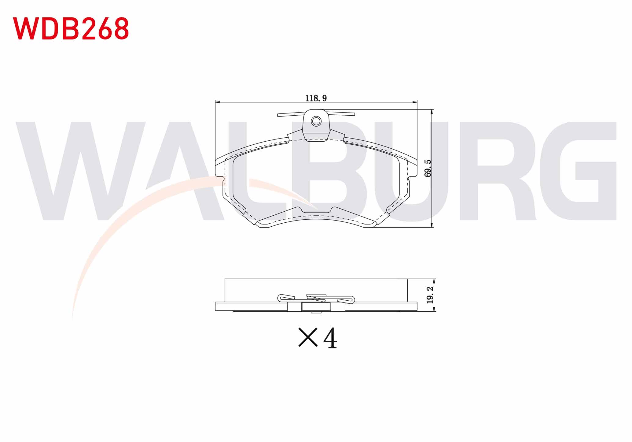 WALBURG WDB268 | Fren Balata Ön VW Passat 1.6 1996-2000 / Passat 1.9 TDI 1996-2000 / Passat 1.8 T 1996-2000 / Audi A4 1.6 1994-2001 / A4 1.8 1994-2001 / A4 1.9 TDI 1994-2001 /