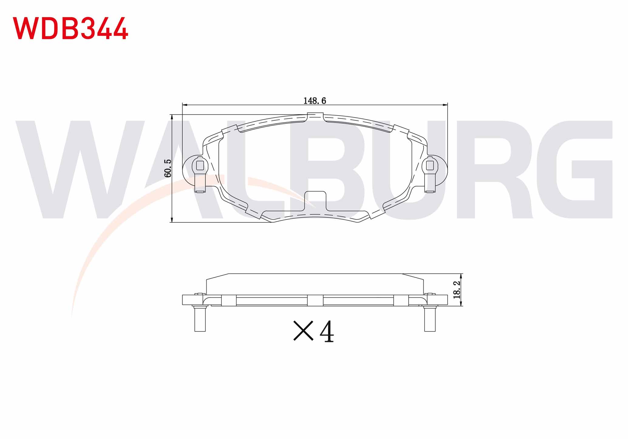 WALBURG WDB344 | Fren Balata Ön Ford Mondeo III 1.6İ 16V 2000-2007 / Mondeo III 2.0 TDCI 2000-2007 / Mondeo III 2.0İ 16V 2000-2007 / X-Type 2.0İ 2001-2009 / X-Type 2.0 D 2006-2009 / X-Type 2.5İ 2001-2009