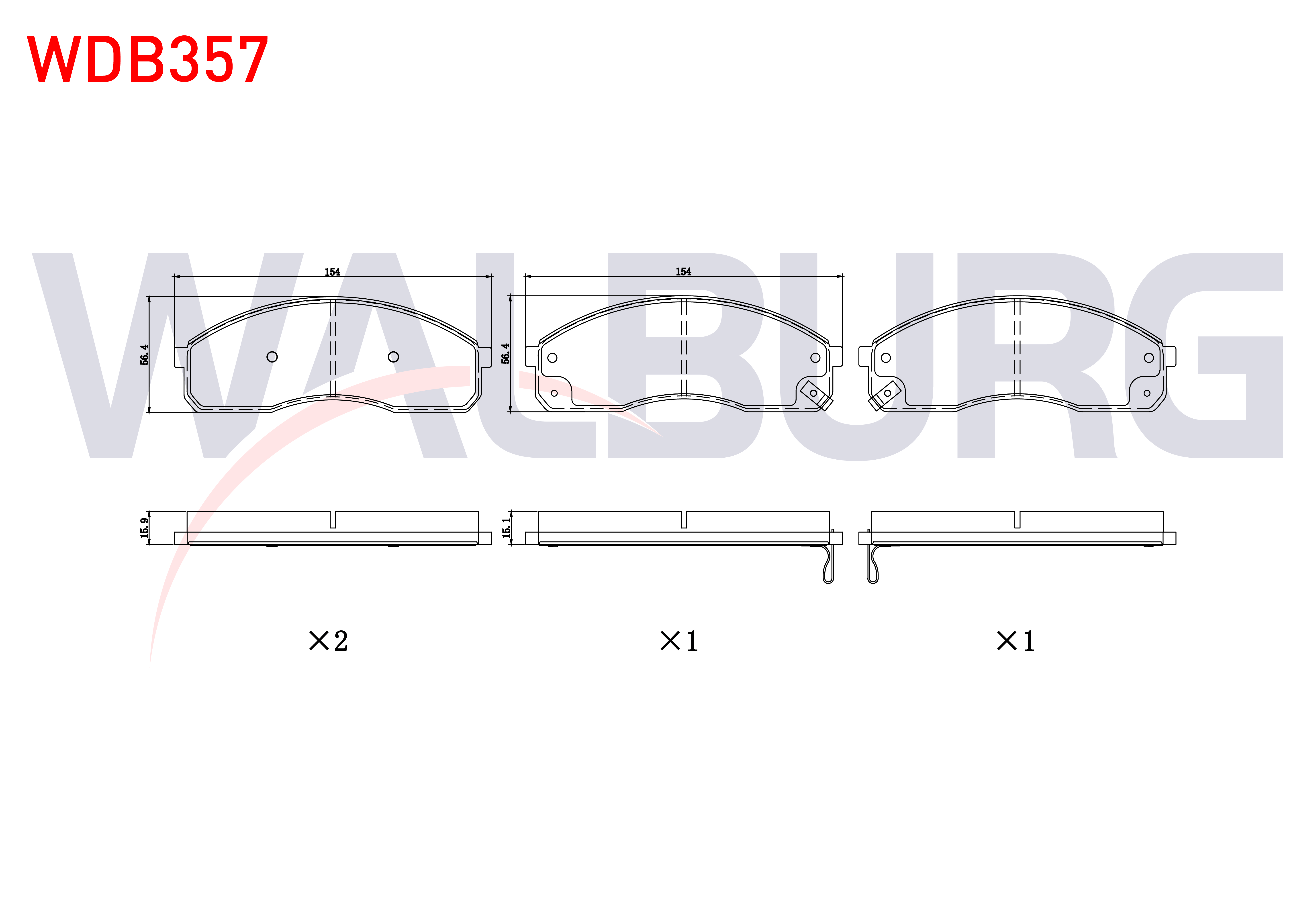 WALBURG WDB357 | Fren Balata Ikazlı On Hyundai H100 2.5 D 1993-2004 / Kia Pregıo (Tb) 2.7 D 1997-2002 / Kia Carnıval II 2.5 V6 2001-2006
