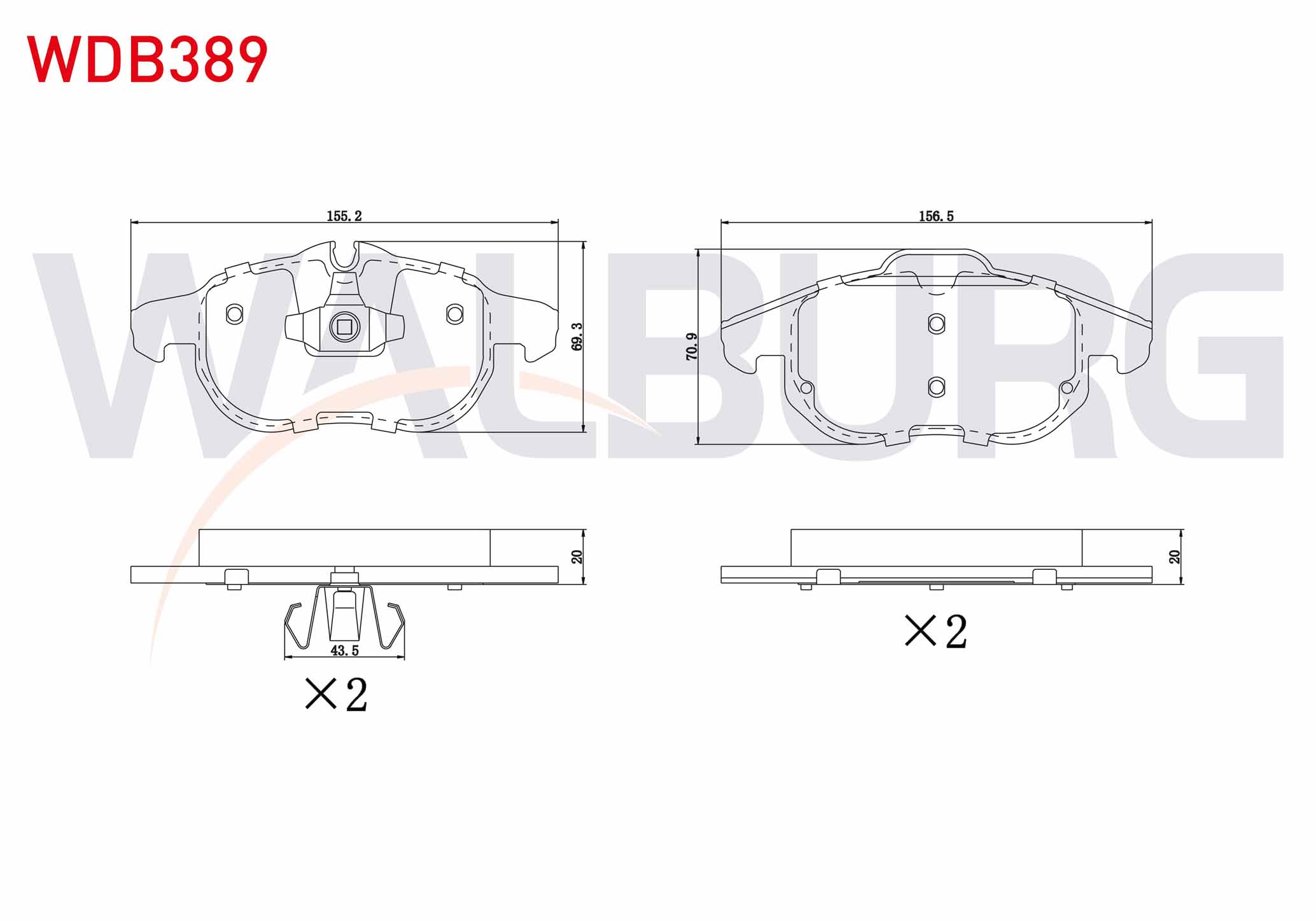 WALBURG WDB389 | Fren Balata Ön Opel Vectra C 1.6 16V 2002-2008 / Vectra C 1.9 CDTI 2002-2008 / Vectra C 2.0 Dtı 2002-2008 / Vectra C 2.2 16V 2002-2008 / Sıgnum 2.0 Dtı 2003 -