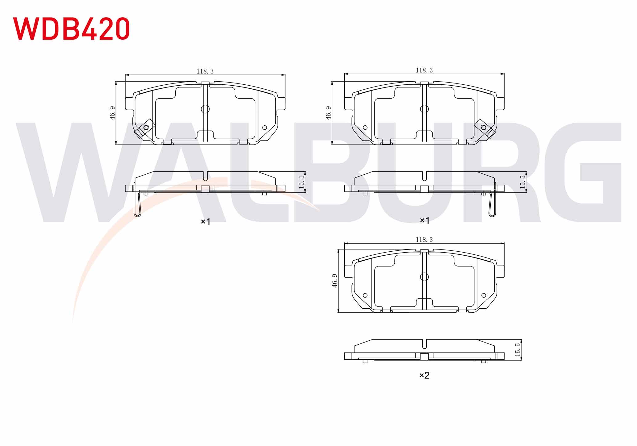 WALBURG WDB420 | Fren Balata Arka Ikazlı Kia Sorento I (Jc) 2.4İ 2002-2009 / Kia Sorento I (Jc) 2.5 CRDI 2002-2009