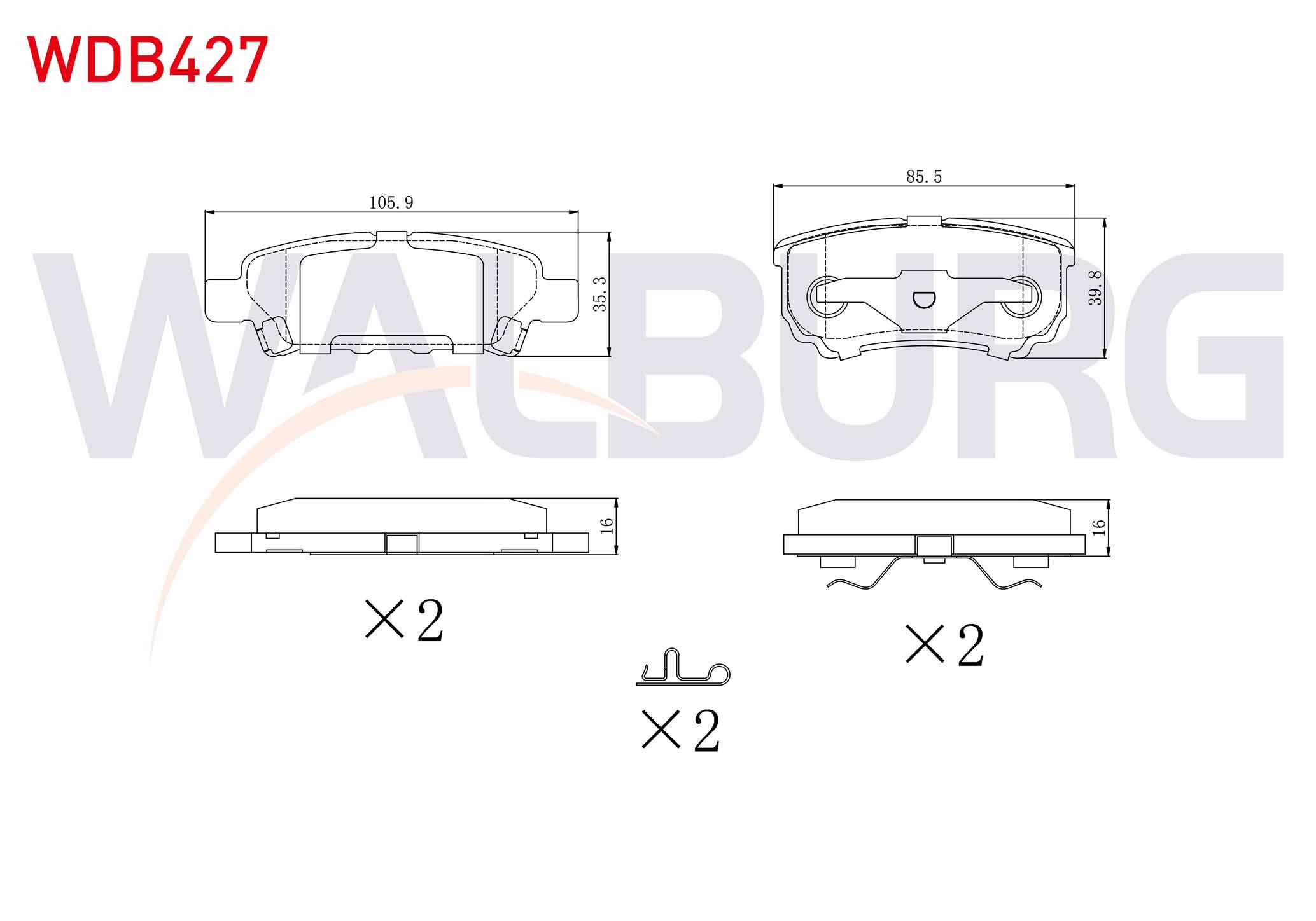 WALBURG WDB427 | Fren Balata Arka Mitsubishi Lancer VII 1.3 2003-2007 / Lancer 2.0 2007-/ Outlander I 2.0 2001-2006 / Outlander II 2.0 Dı-D 2006-2012 / Jeep Compass 2.0 Crd 2006-/ Peugeot 4007 2.2 HDI 2007 -